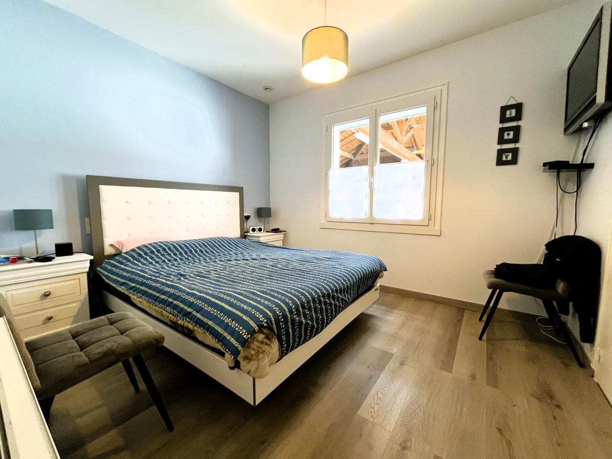 A l'étage, un palier dessert en enfilade un palier bureau, un salon, une chambre sous combles, avec de nombreux espaces de rangement.