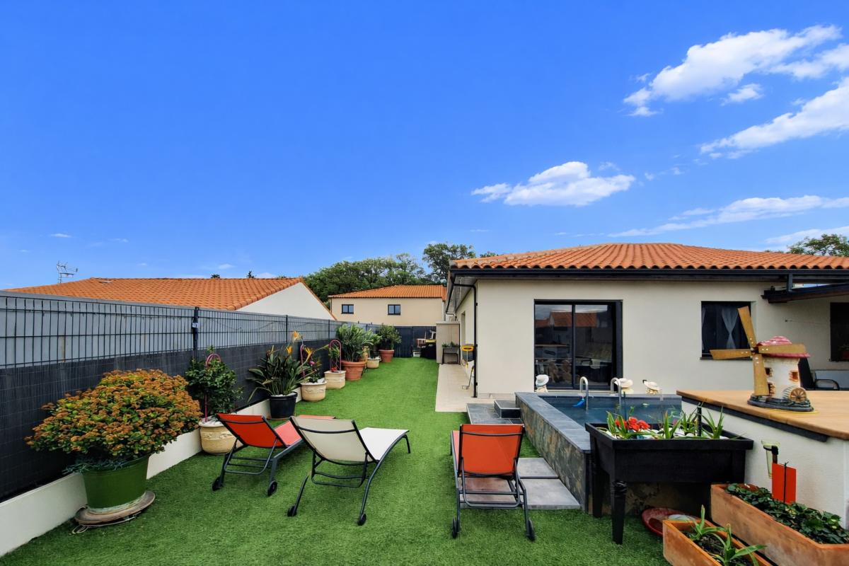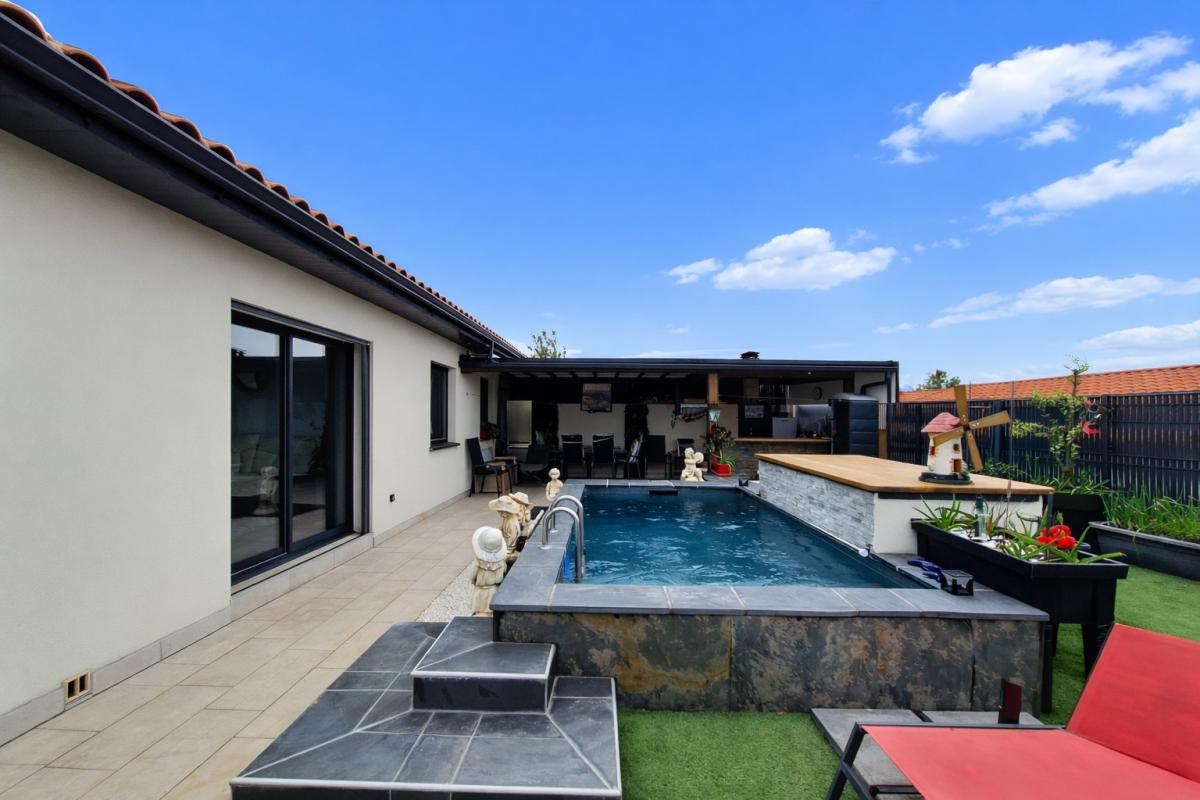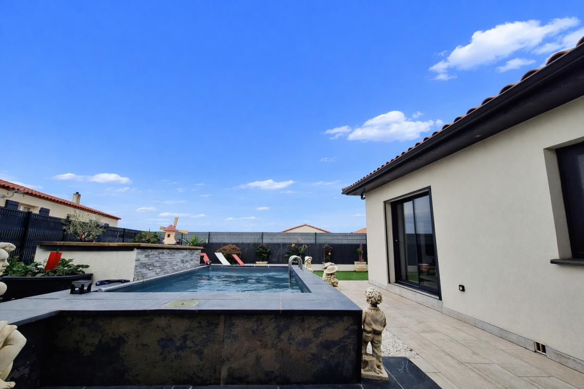 À l’extérieur, tout a été pensé pour profiter pleinement du cadre et du climat méditerranéen : une belle pergola isolée avec espace dinatoire et une véritable cuisine d’été avec barbecue, une piscine de style balinais, ainsi que des espaces de détente aménagés en gazon synthétique, le tout sur un terrain en position dominante avec vue sur le Canigou.