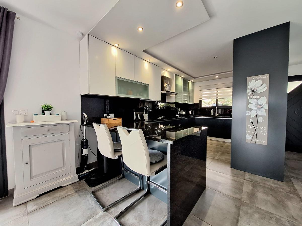 la villa offre un réel confort de vie avec des prestations haut de gamme tel que les baies coulissantes et menuiseries en aluminium double vitrage, la climatisation gainable, un adoucisseur d'eau, le ballon thermodynamique...