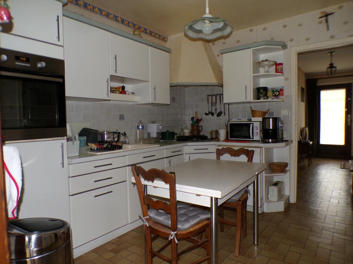 Au rez-de-chaussée : entrée, cuisine aménagée avec véranda, séjour/salon, trois chambres, salle de bains, wc ;