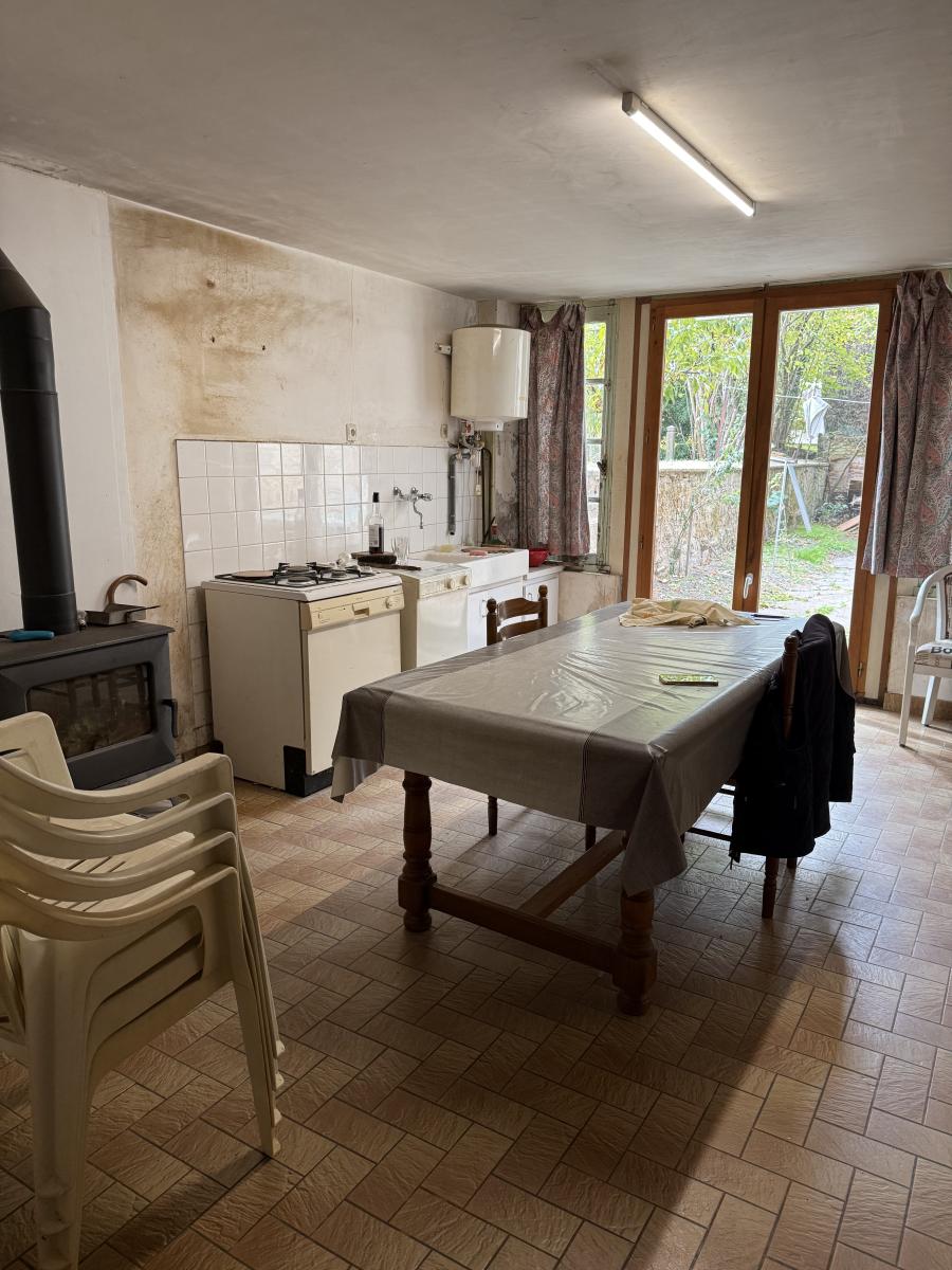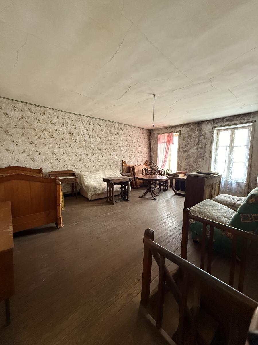 Maison de bourg entièrement à rénover comprenant : un couloir d'entrée, une pièce, une cuisine, une salle d'eau/wc, un débarras. A l'étage deux chambres.