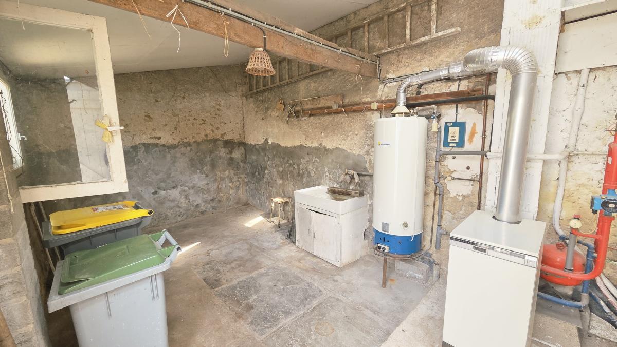 - au rez-de-chaussée : entrée sur salle à manger, séjour avec cheminée ouverte, cuisine, arrière-cuisine, salle d'eau, WC, une chambre, véranda, cellier avec chaufferie.