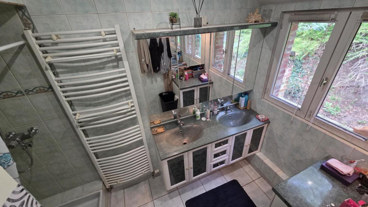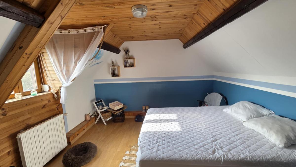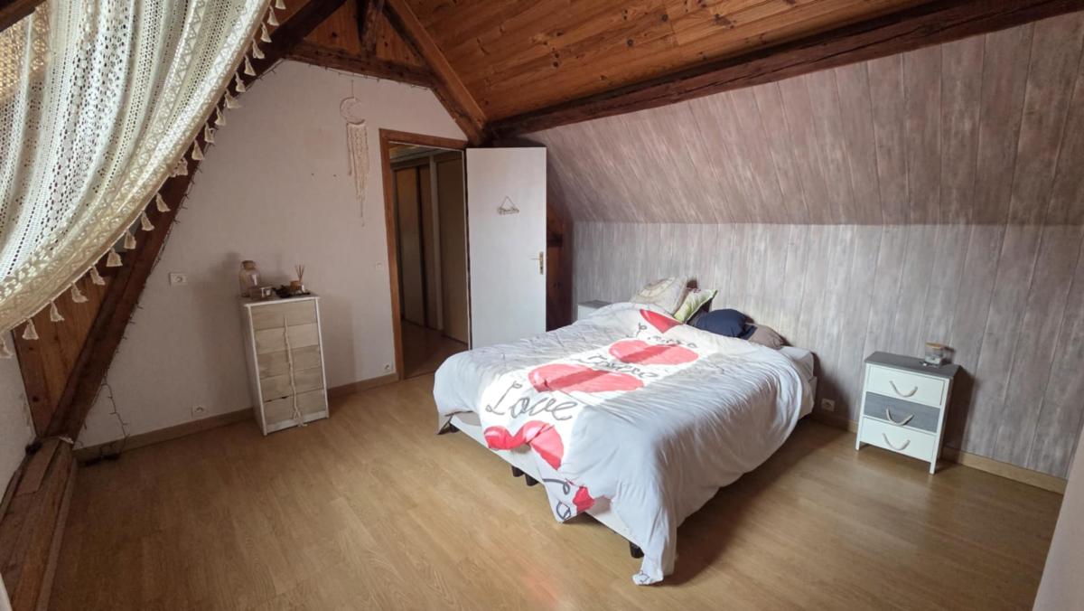 A l'étage, vaste palier avec dressing, deux grandes chambres, bureau et débarras.