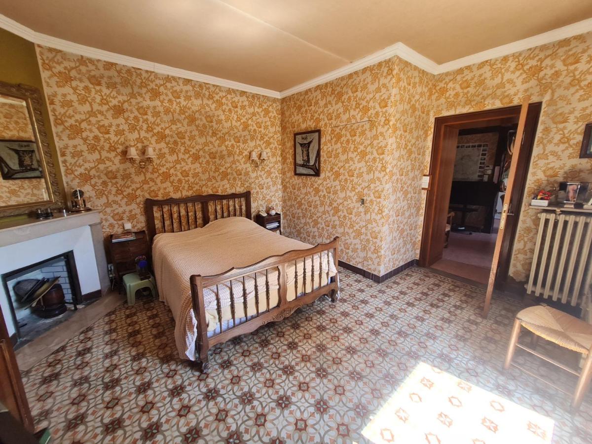 / au rdc: entrée dans séjour, cuisine aménagée et équipée ( éléments hauts et bas, évier 1.5 bacs, plaque 4 feux électriques, hotte, four) avec cheminée foyer ouvert, salon avec cheminée, couloir, wc, salle de bains ( baignoire, lavabo), chambre,