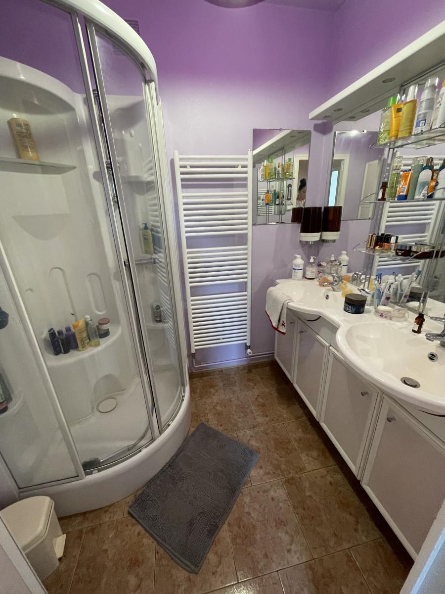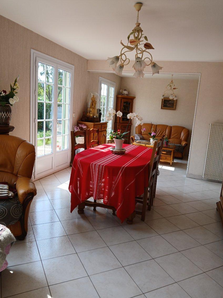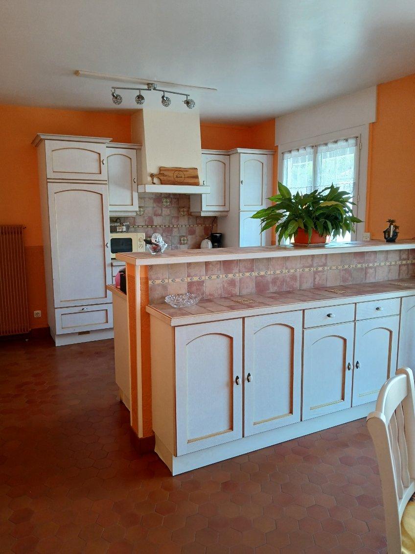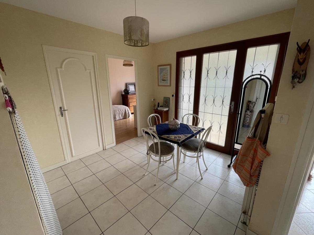 Maison comprenant : une grande entrée desservant, un bureau, une chambre, puis une grande pièce de vie lumineuse. Chaufferie, WC, ancien garage transformé en cellier, cuisine équipée et aménagée avec coin repas, puis dégagement distribuant chambre, dressing et salle d'eau.