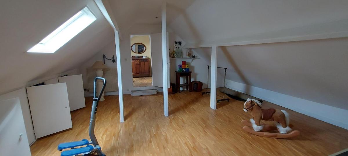 A vendre maison à usage d’habitation comprenant au rez-de-chaussée : entrée, salle-à-manger, séjour, cuisine, deux chambres, une salle d’eau, un WC indépendant. Une chaufferie, un atelier. A l’étage un palier desservant une chambre, une salle de jeux, un palier avec lavabo (en enfilade). Un grenier attenant avec un accès par l’extérieur. Un garage, un grenier au-dessus de la cuisine, un abri de jardin. Le tout sur un terrain clos d’environ 1050m² avec un garage, une cave et sur le terrain un puit.