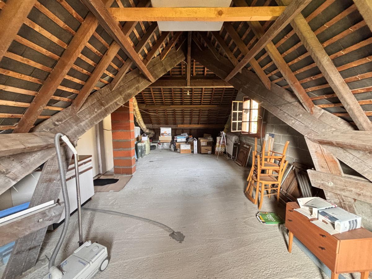 A l'Étage: Palier, une chambre, salle d'eau avec wc, grenier aménageable ( possibilité chambre supplémentaire)