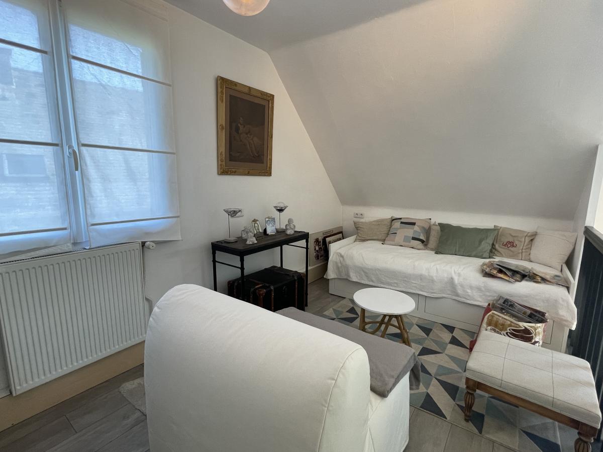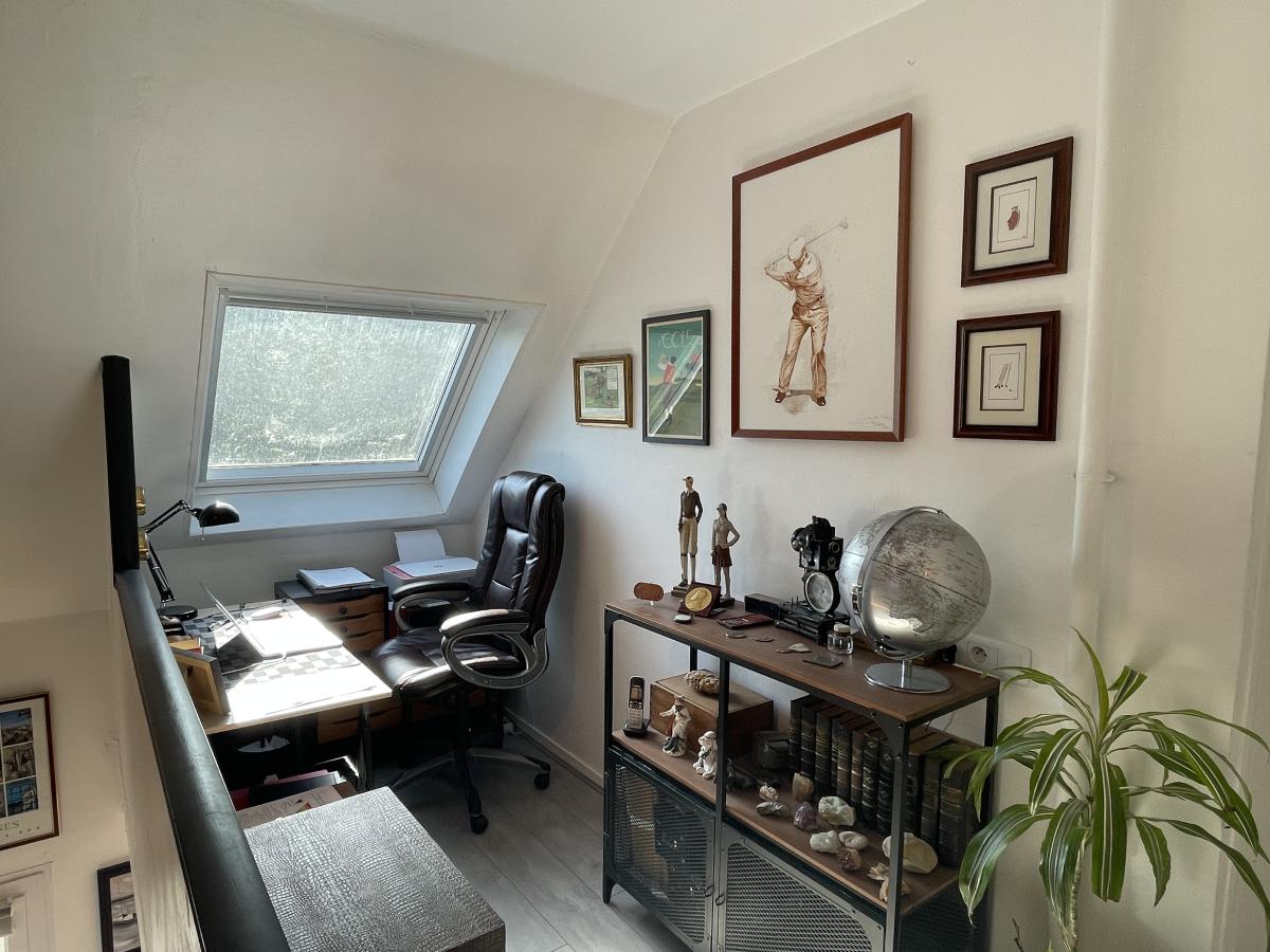 Étage : deux chambres, grande mezzanine avec bureau (pouvant être aménagée en troisième chambre), salle de bains, salle d’eau, W.C.