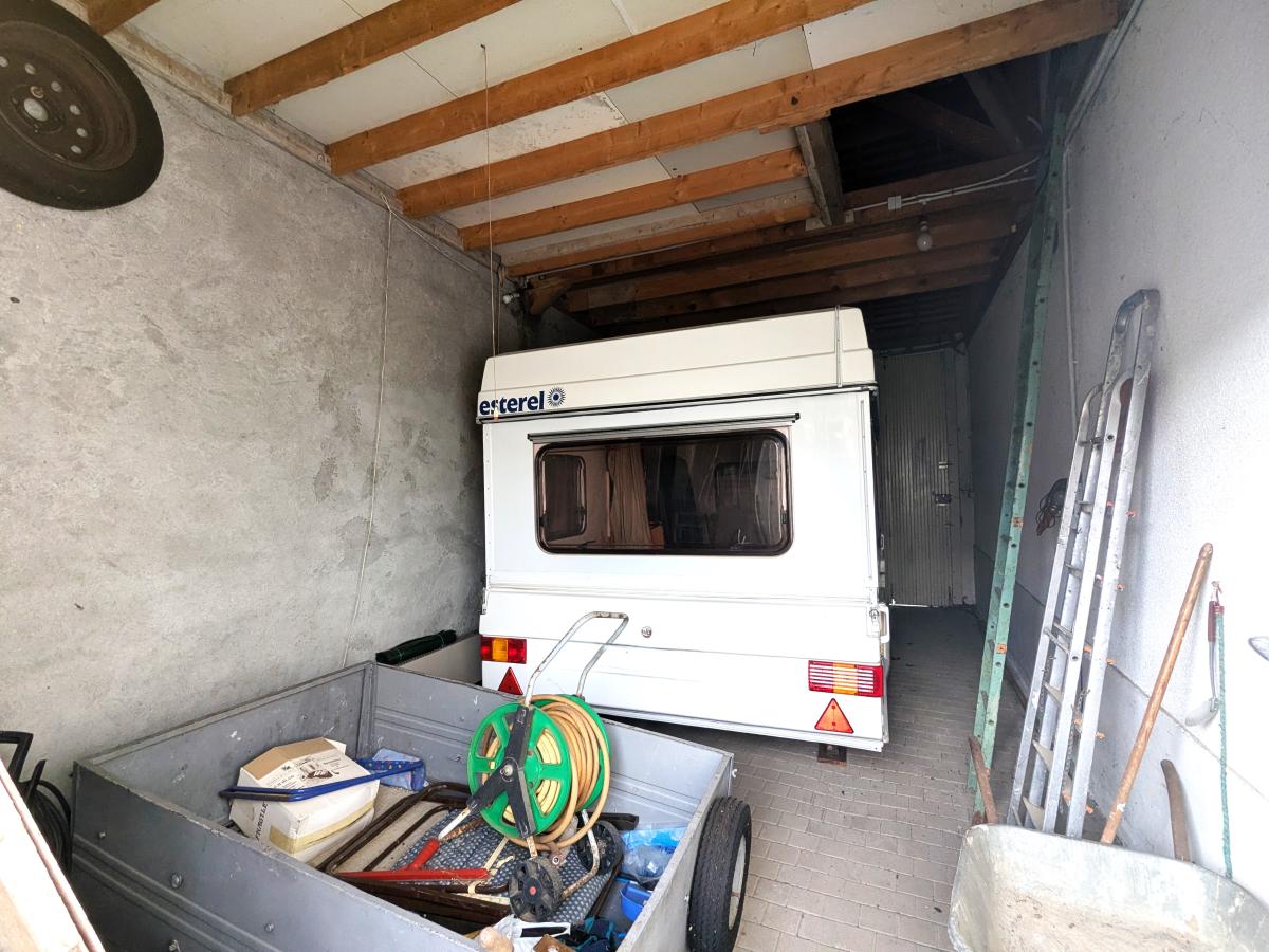 Deux grands garages dont un en grande hauteur pour camping-car, atelier, balcon, cour à l’avant et jardin.