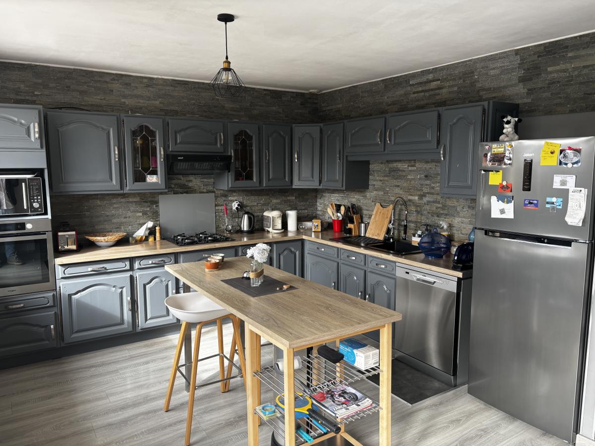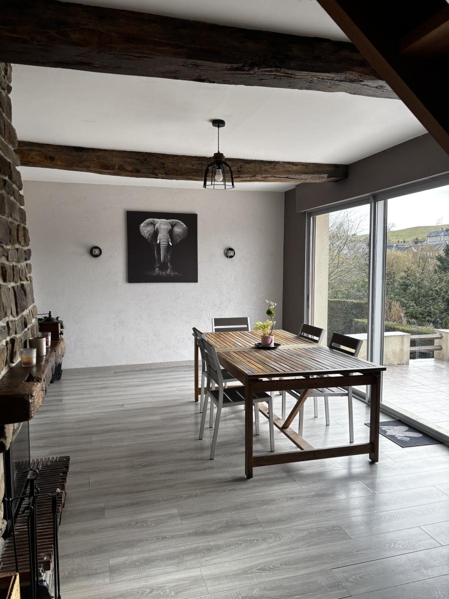 - Au rez-de-chaussée : cuisine aménagée et équipée, salle à manger/salon avec cheminée et accès a la terrasse. Dégagement donnant accès à une chambre, une salle de bains et WC