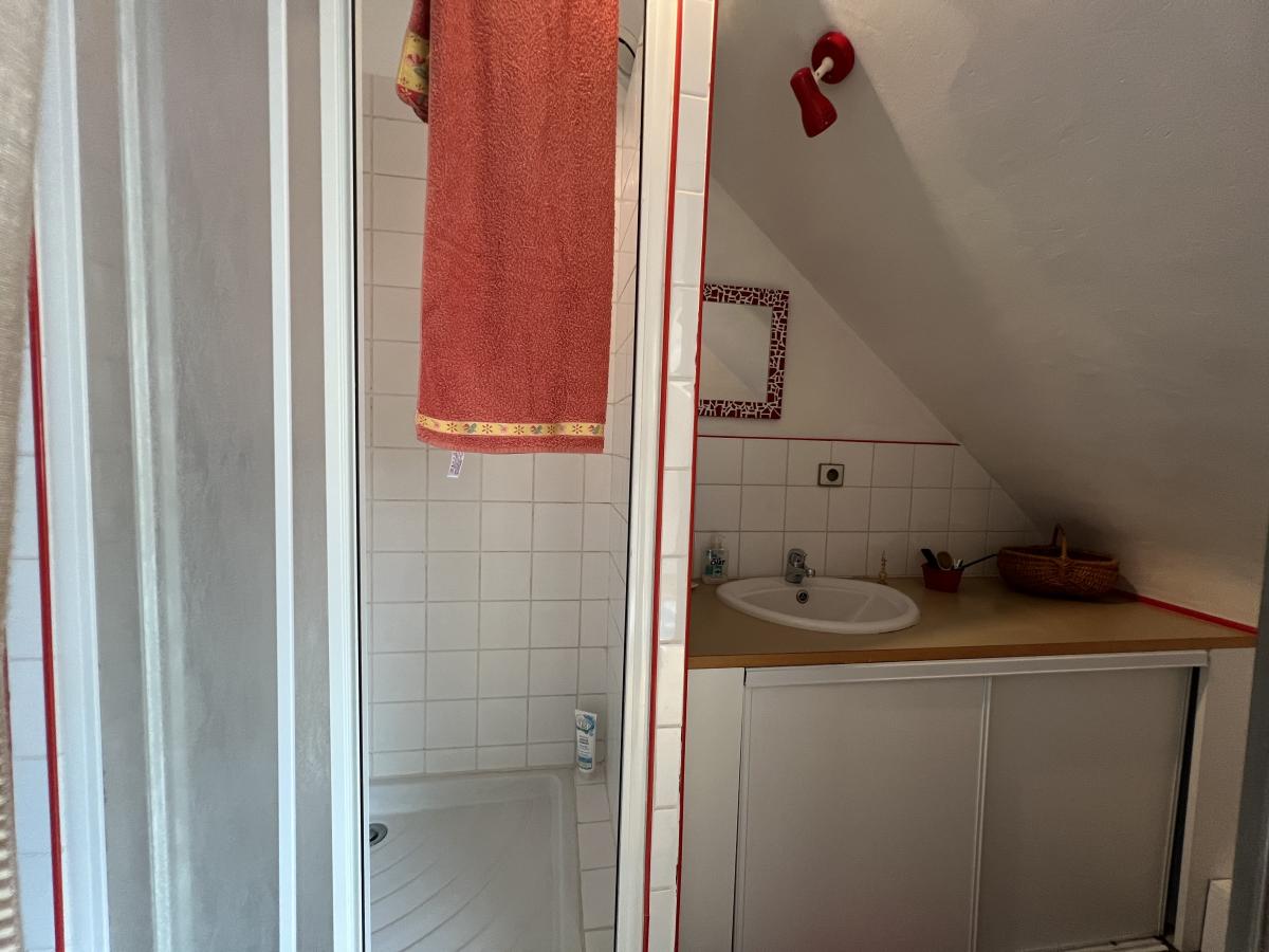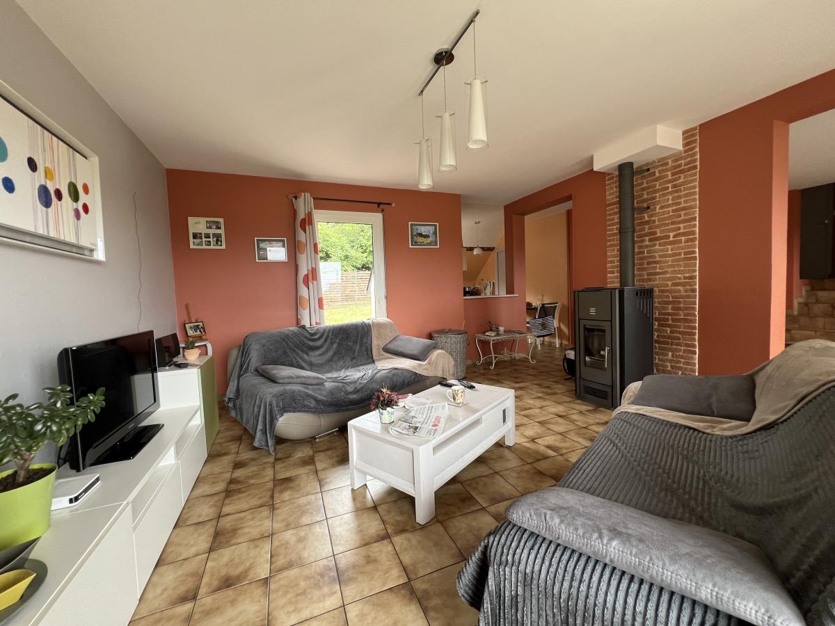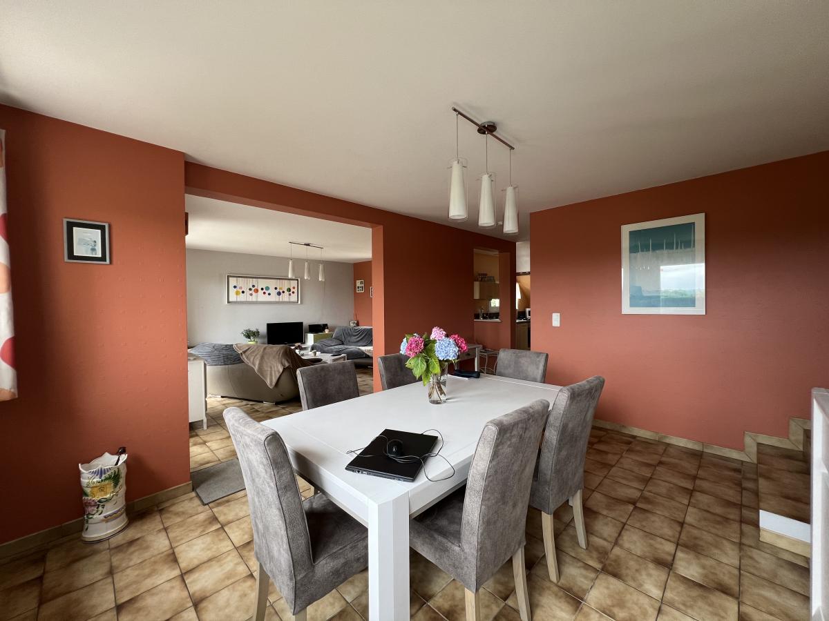 BINIC - Maison traditionnelle sur terrain de 813 m² comprenant : salon avec poêle à pellets, salle à manger, cuisine aménagée, cellier accès garage. (possibilité extension) A mi-palier : une chambre avec placard, salle d'eau récente avec placard, wc, avec grenier au-dessus (pièce supplémentaire possible). A l'étage : palier avec coin bureau, deux chambres, salle d'eau. Garage, cour, jardin paysagé clos. Environnement calme et agréable, non loin des commodités.