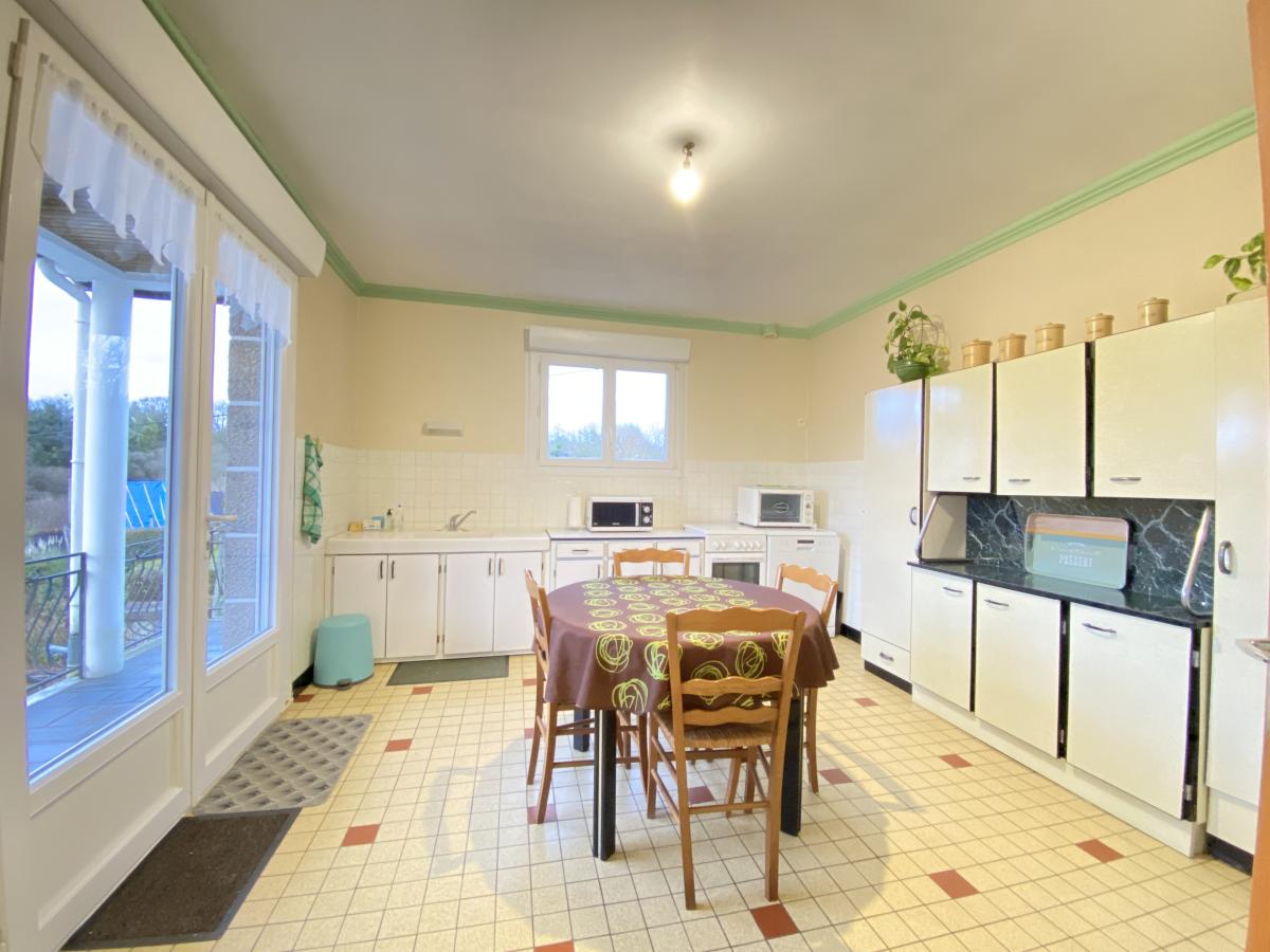 Maison d'habitation des années 70, avec vue dégagée et proche des commerces de BELLE-ISLE-EN TERRE, comprenant :