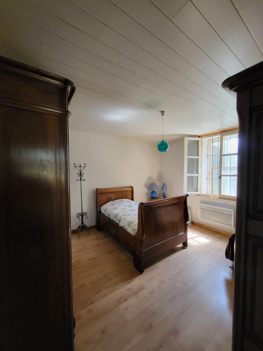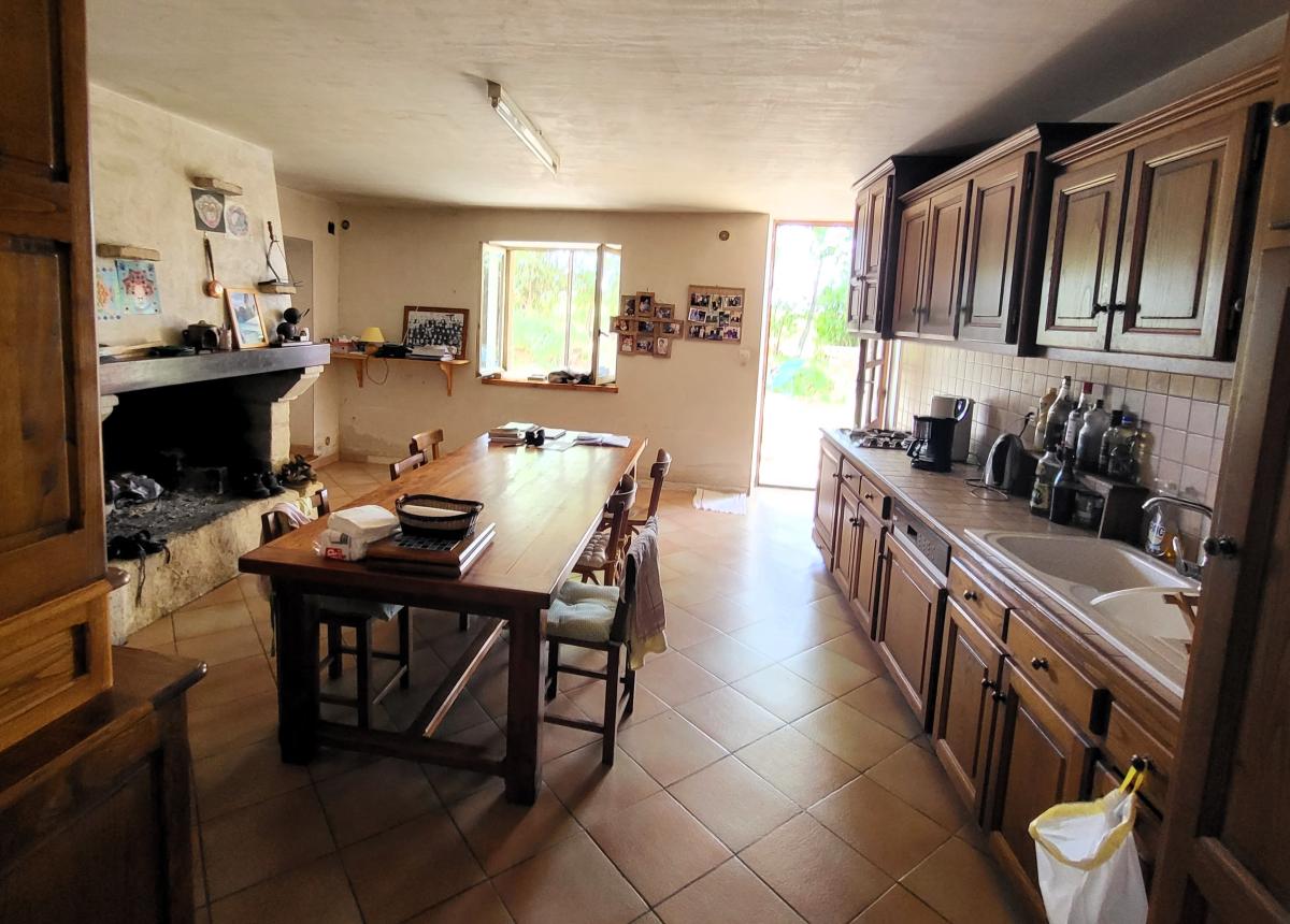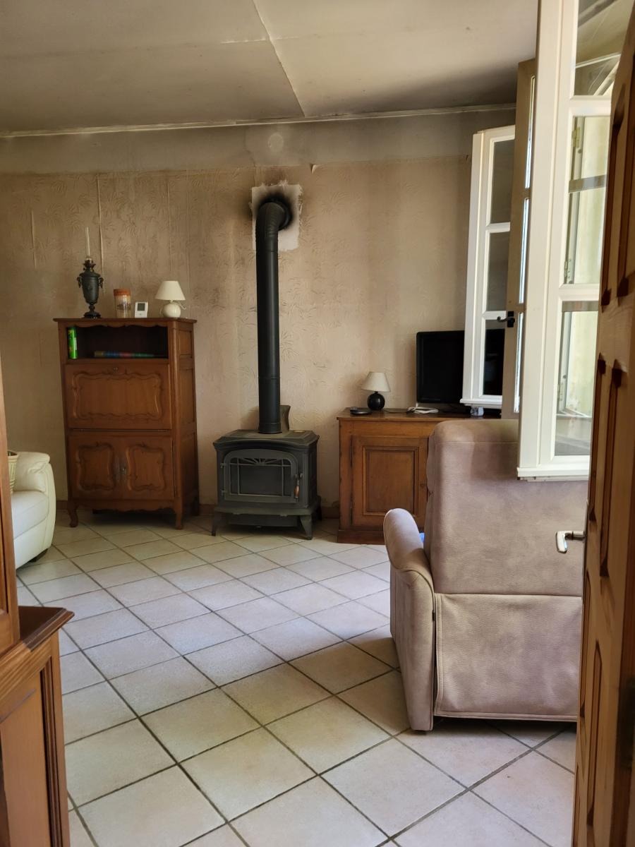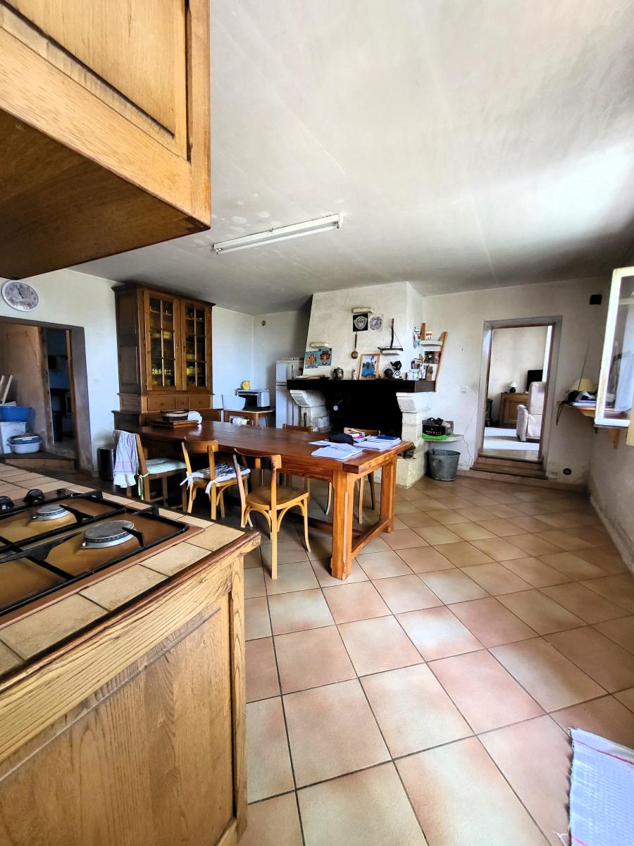 Elle se compose au rez-de-chaussée d'une cuisine avec une grande cheminée ouverte, d'un salon avec un poêle, une cellier-buanderie, une salle de bains, un toilette, une chambre.