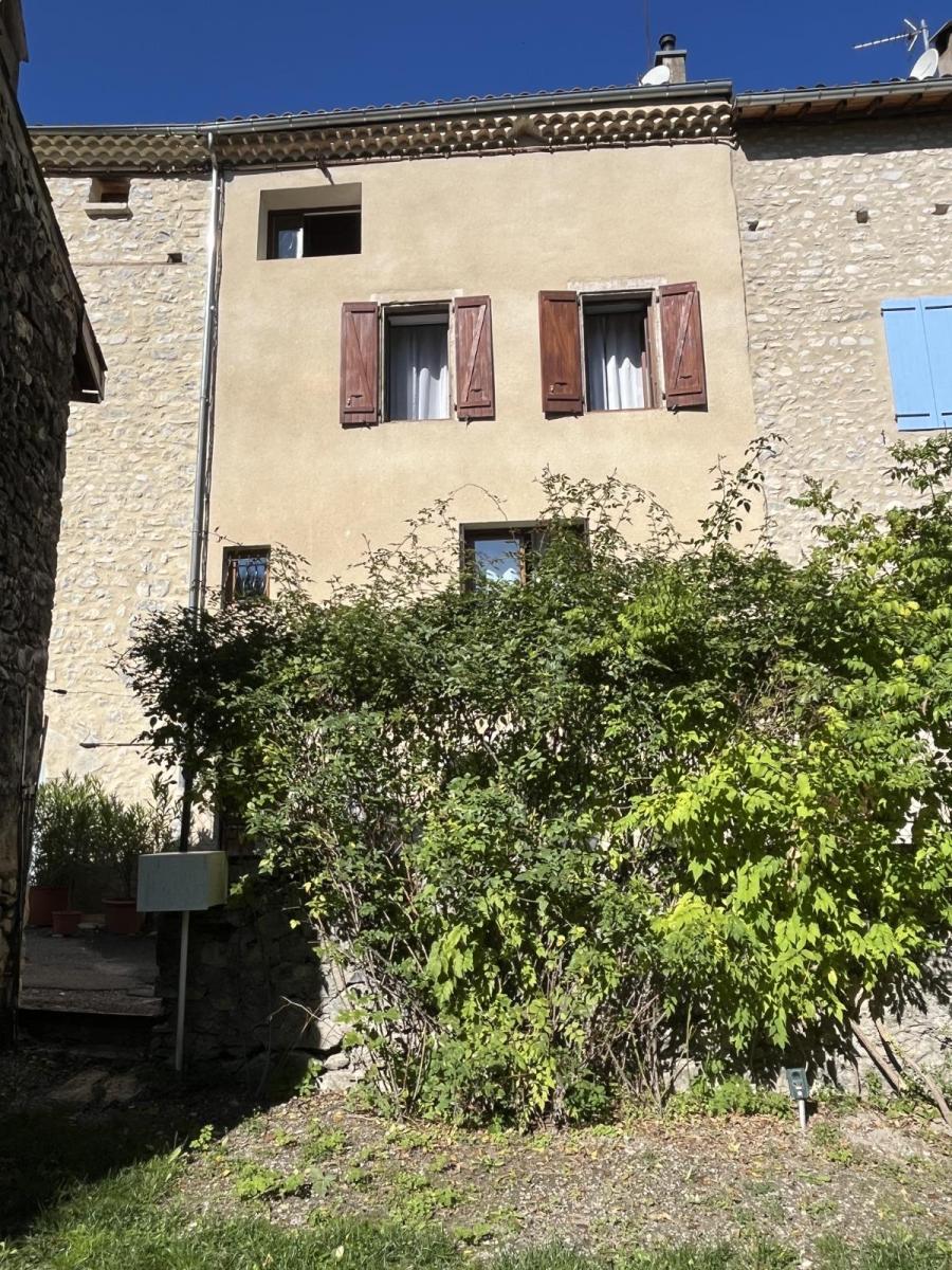 Sur la commune de Châtillon-en-Diois, ce charmant village de la Drôme connu pour son centre médiéval et ses cabanons entourés de vignoble étant un des plus beaux village de France,on vous propose une maison en pierres des années 1800 de 110 m² (env.) avec son jardinet. Au rez-de-chaussée : Une ancienne écurie voutée de 44 m²(env.) servant de garage mais pouvant être aménagée si on le désire. Un escalier descend dans une cave avec terre battue de 33 m² (env.). Au 1er étage : Une pièce de vie avec cuisine équipée avec son poêle à granulés et un WC. Au 2ème étage : deux chambres, un petit bureau, une salle d'eau avec douche et baignoire. Au 3ème niveau : Une grande chambre sous toiture de 34 m² (env.) avec un début de salle d'eau (travaux en cours) et une pièce servant de grenier de 10 m² (env.). Renseignements complémentaires Toiture refaite il y a 4 ans. Menuiseries doubles vitrages récents dans les chambres du 1er étage. Radiateur électrique en complément dans les chambres. Les informations sur les risques auxquels ce bien est exposé sont disponibles sur le site Géorisques : www. georisques. gouv. fr