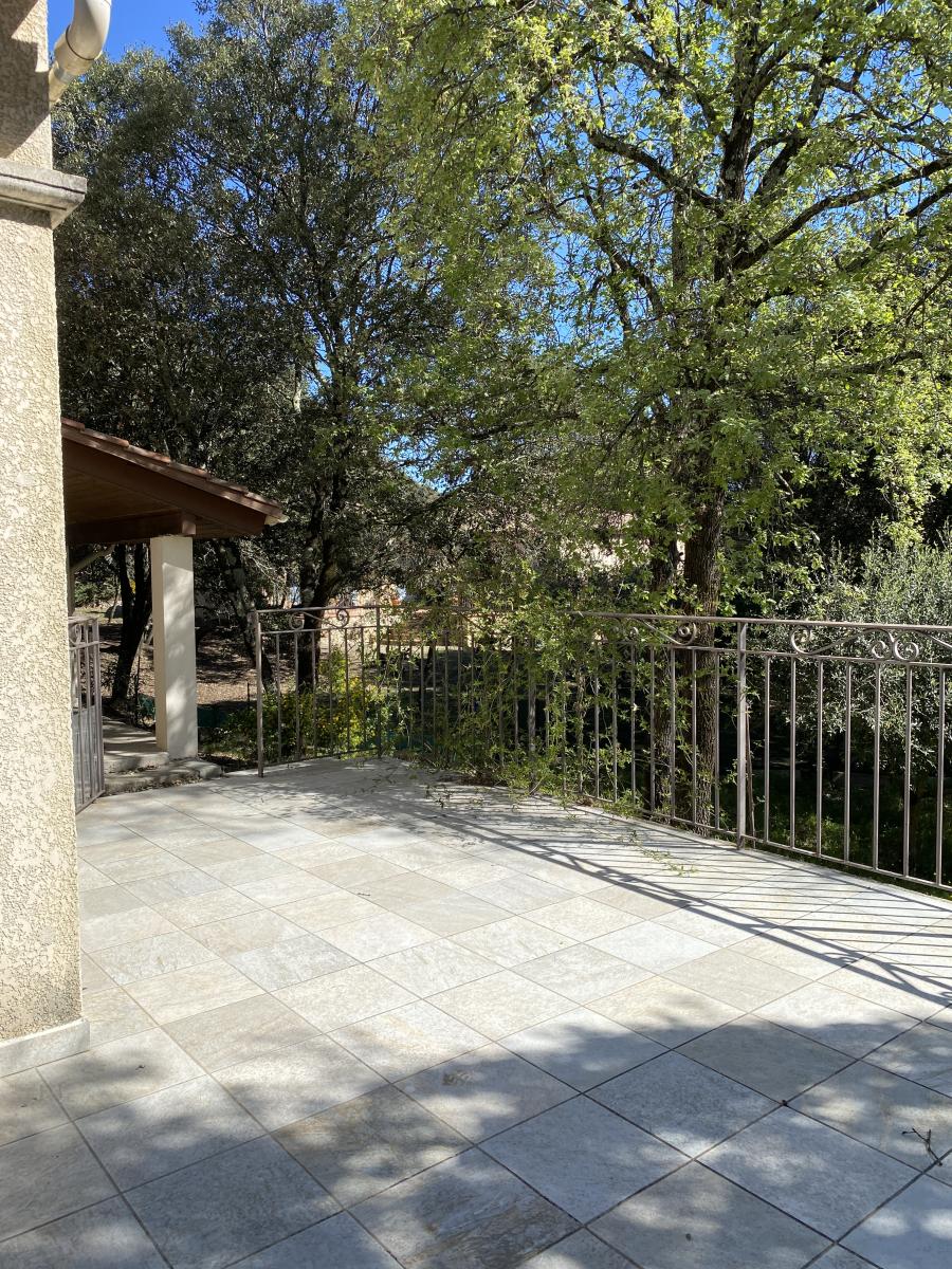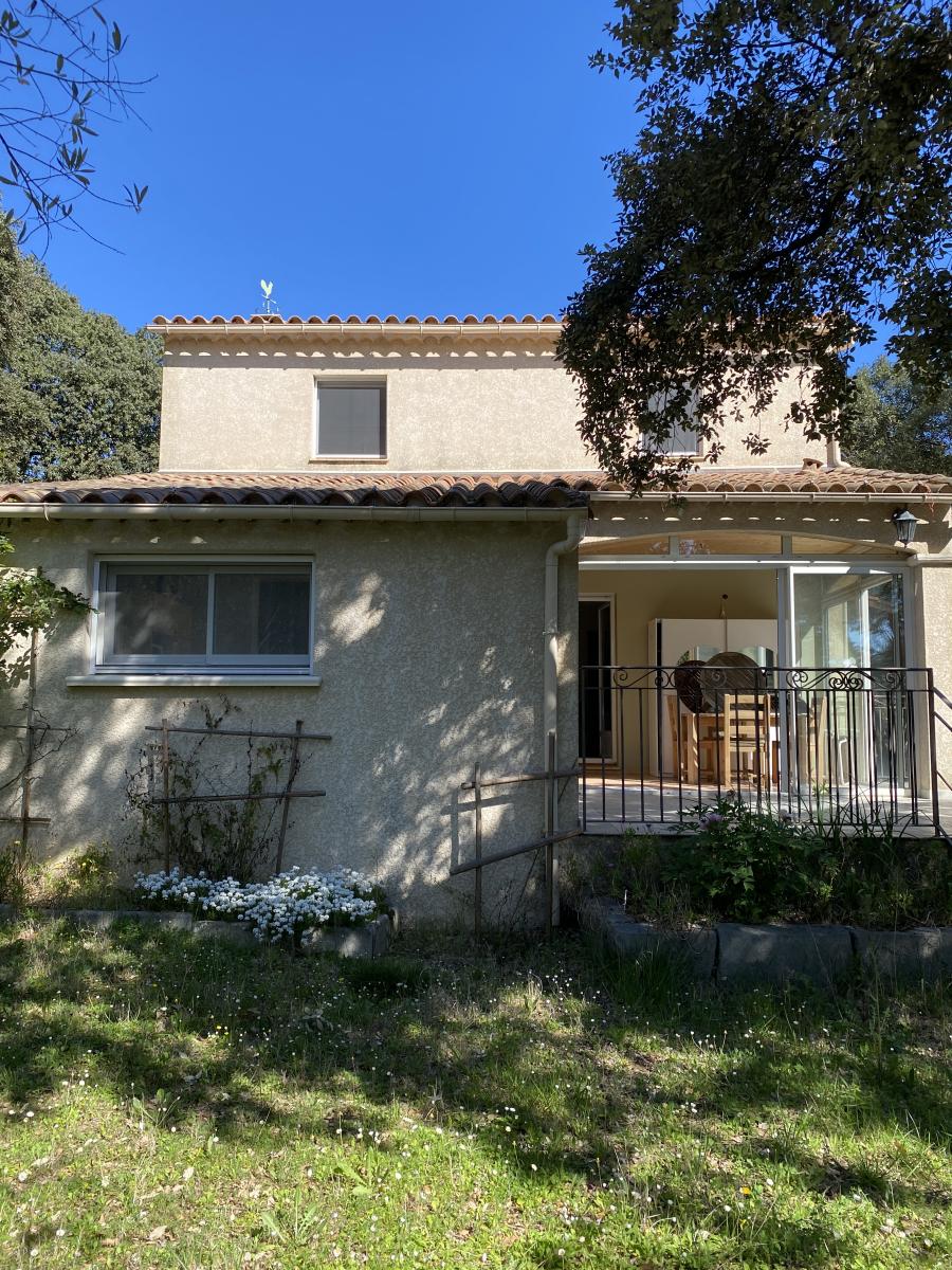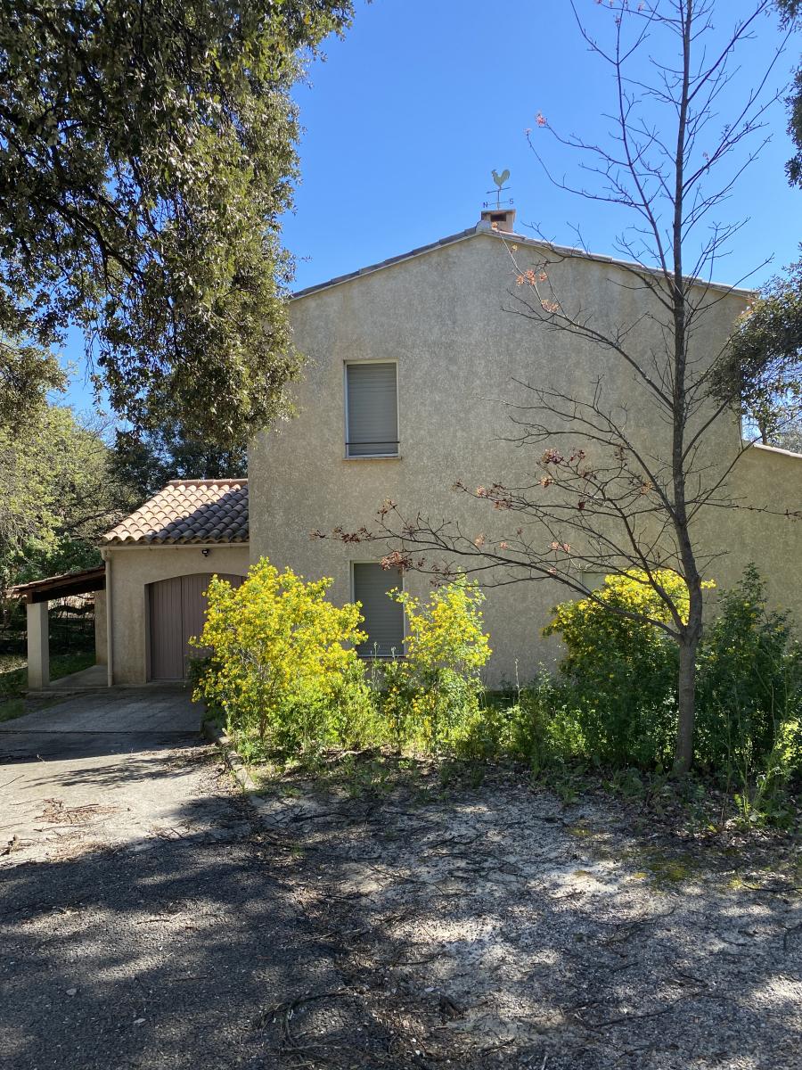 Entre Nîmes et Alès. Maison de type 4 en R+1 avec garage sur 1350 m² de terrain arboré. Non mitoyenne elle a été construite en 2000 et agrandie en 2012. Elle dispose au RDC d'une belle pièce de vie de 42 m² avec cheminée, d'une cuisine équipée de plus de 18 m² ainsi que d'une véranda, d'une buanderie, et de WC. A l'étage se trouve 3 chambres avec placards, et une salle d'eau et des WC. L'ensemble est climatisé, le garage attenant de 22 m² dispose d'une mezzanine et le terrain est piscinable.
