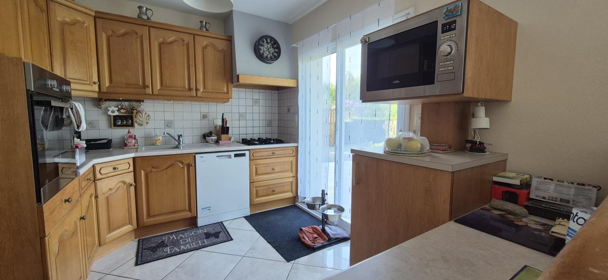 A 2km du centre-ville, 5km des premières plages, venez découvrir cette maison traditionnelle sur un terrain clos de 1151 m2. Elle se compose, au rez-de-chaussée, d'une entrée par une véranda (22m2), une cuisine ouverte sur une pièce de vie avec poêle à granulés, une chambre, une salle d'eau et un wc indépendant. A l'étage, un palier desservant une mezzanine pouvant faire office de bureau, deux chambres, une vaste salle de bains et un wc. Un garage attenant, deux terrasses et un abri de jardin complètent ce bien. Assainissement individuel aux normes. Posez vos valises dans cette maison sans aucun travaux à prévoir.