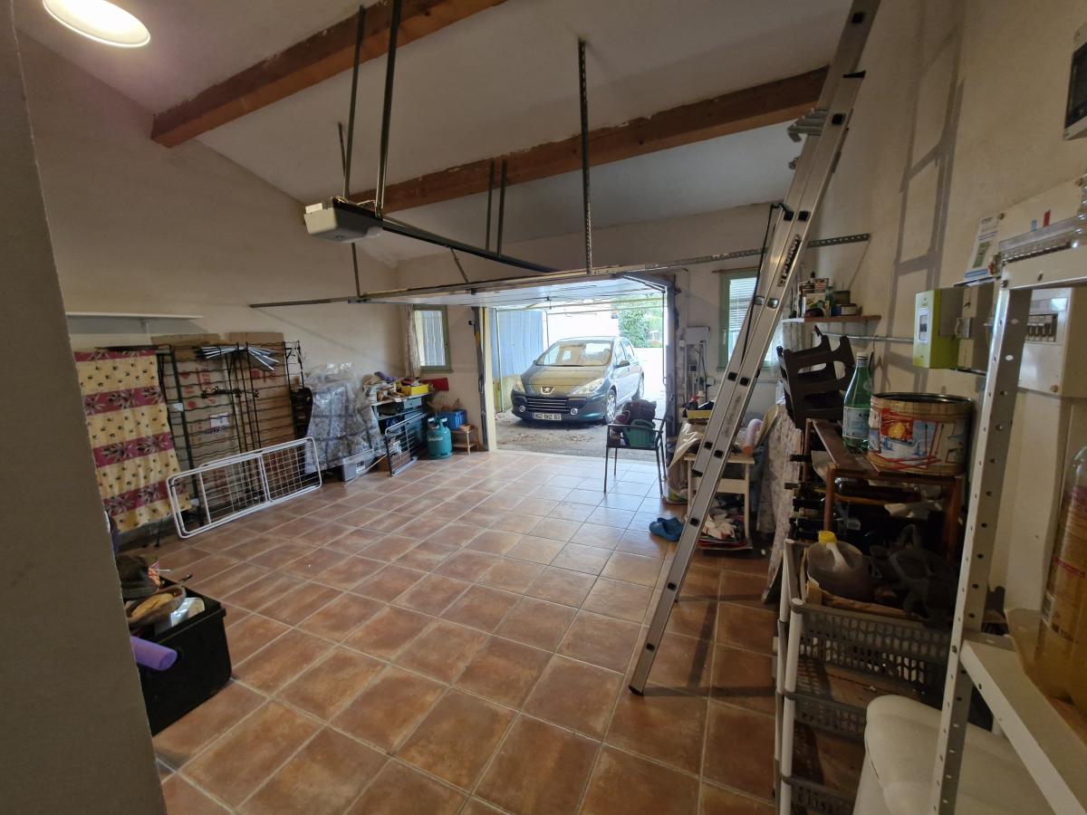 La maison dispose d'un grand garage avec rangement, espace buanderie, salle d'eau.