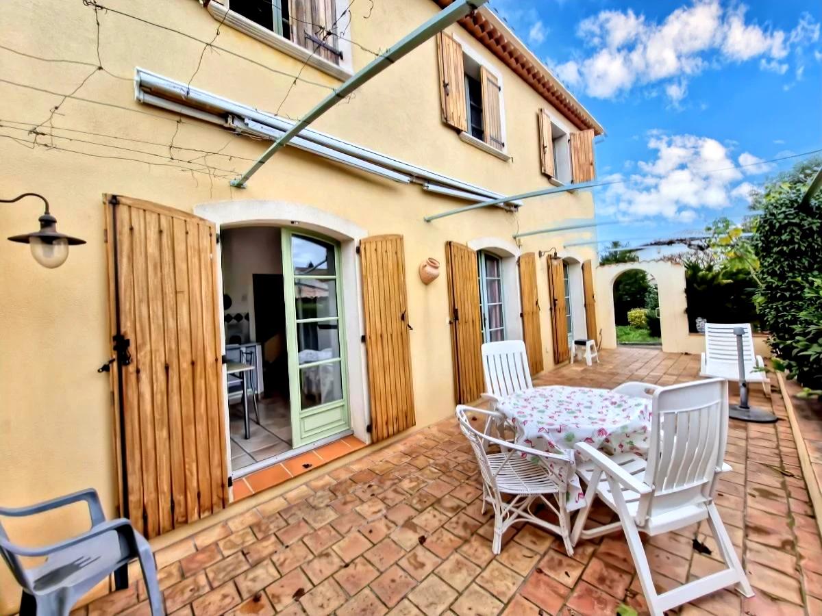 à moins de 3 minutes en voiture de l’Almanarre et des commerces, tout en étant nichée dans un quartier calme et charmant, en impasse.