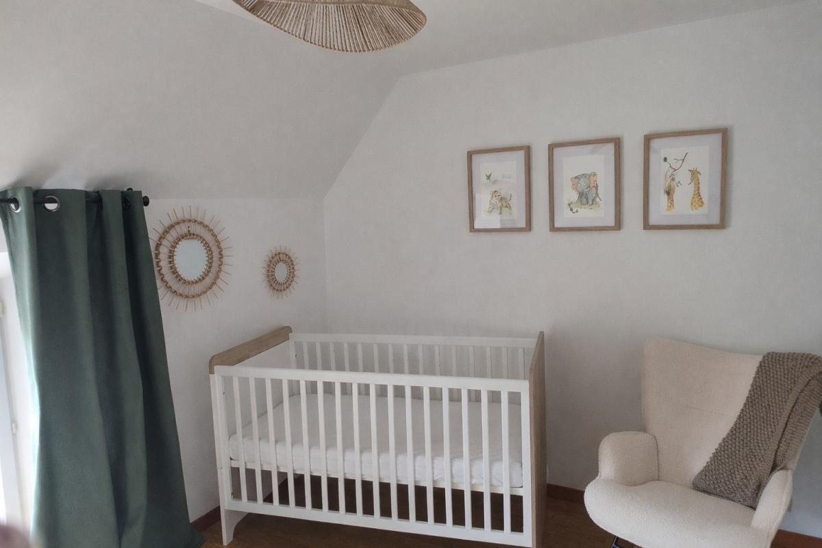 Au rez-de-chaussée : séjour/salon avec poêle à bois ouvert sur la cuisine aménagée et équipée, buanderie, wc.