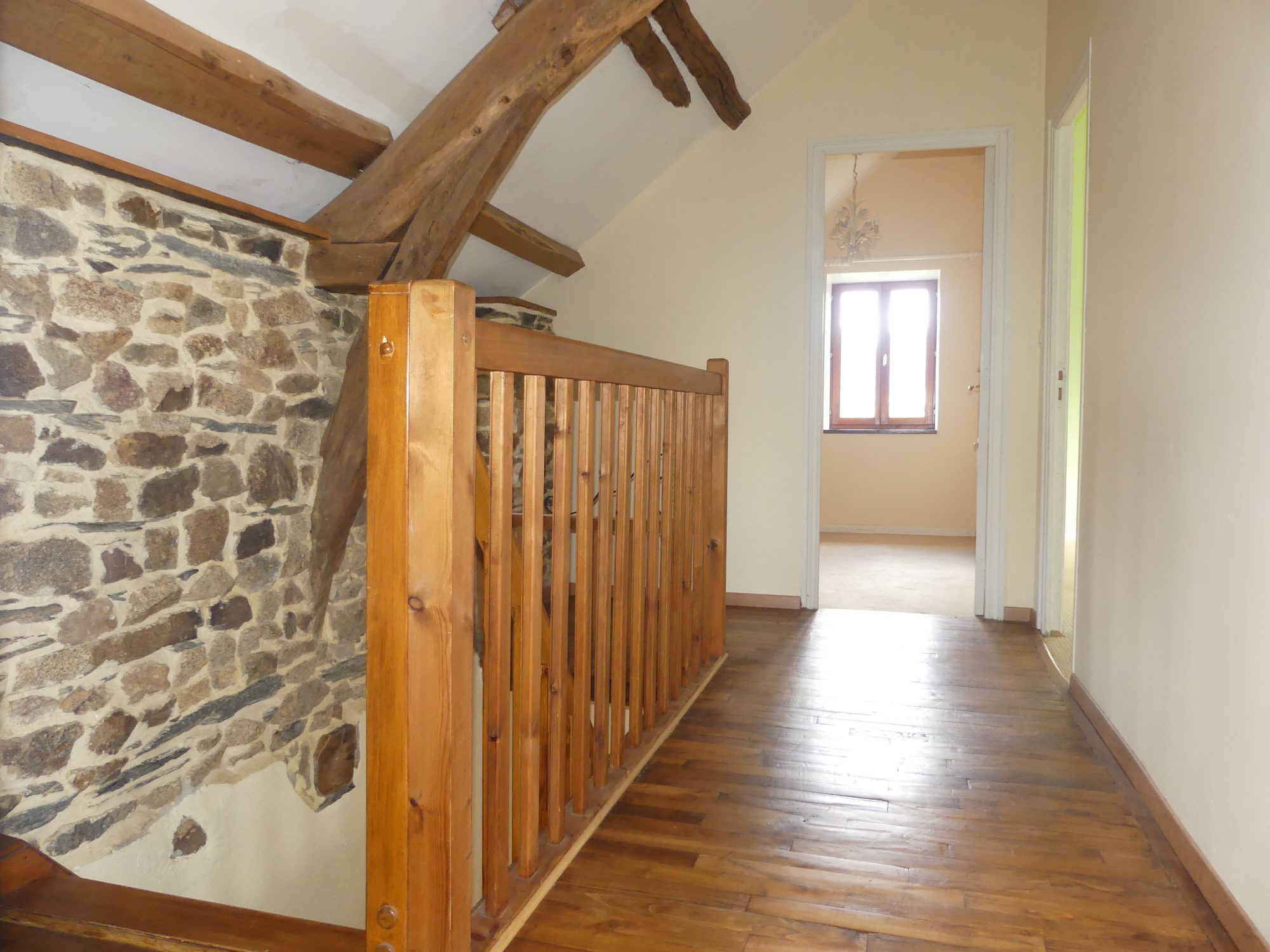 au 1er étage, palier, deux chambres, un bureau, salle de bains avec wc.