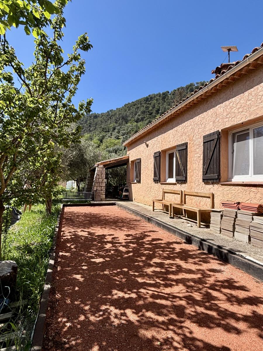 Édifiée sur un terrain plat, la propriété bénéficie d’un cadre de vie paisible et d’un extérieur comprenant une piscine. Les aménagements extérieurs restent à finaliser un devis a d’ailleurs été réalisé à cet effet.