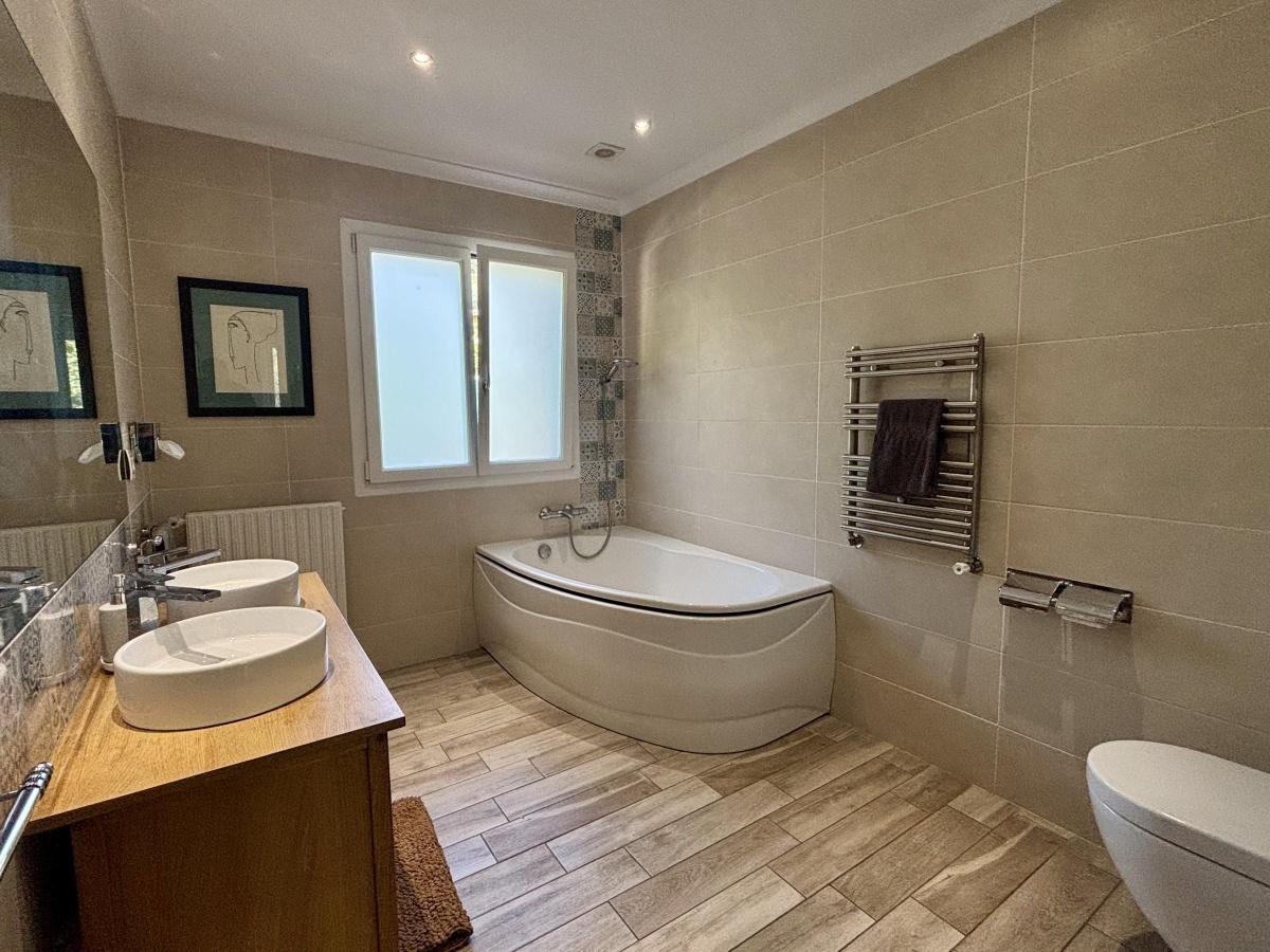 La maison dispose également d’un garage attenant et d’une cave, apportant des espaces de rangement complémentaires.