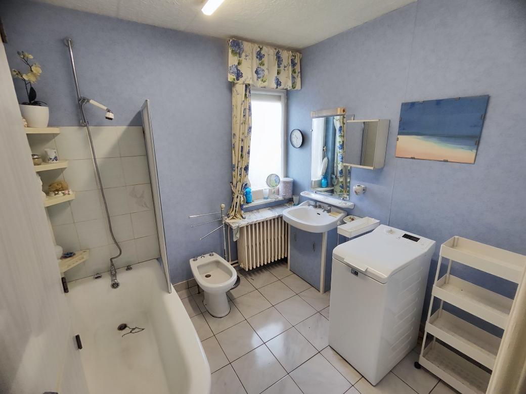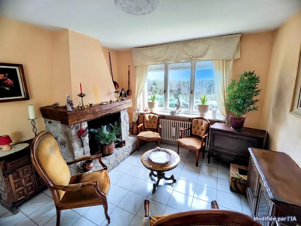 - Au-rez-de-chaussée : entrée, salon (cheminée) / salle à manger, cuisine, couloir, vestiaire/WC, deux chambres, salle de bains, un bureau,
