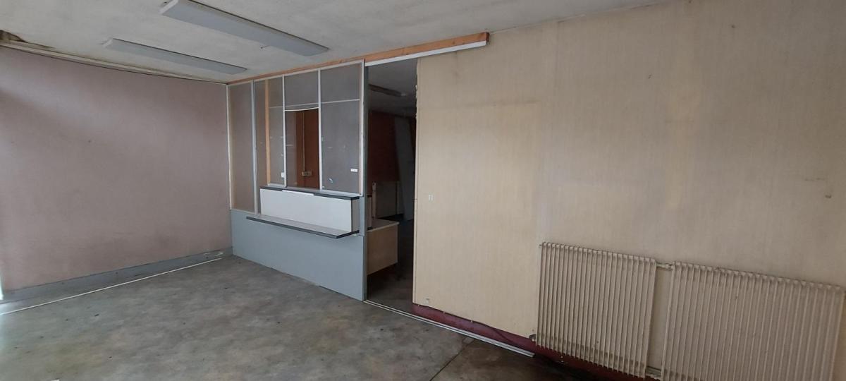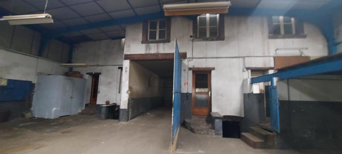 A vendre une maison à usage d'habitation et de commerce comprenant :  Au rez-de-chaussée : garage couvert, bureau, une pièce derrière, une cuisine, à droite de l'entrée du garage : deux pièces.  Au premier étage : six pièces. Caves, grenier, jardin derrière et bâtiment en appentis.