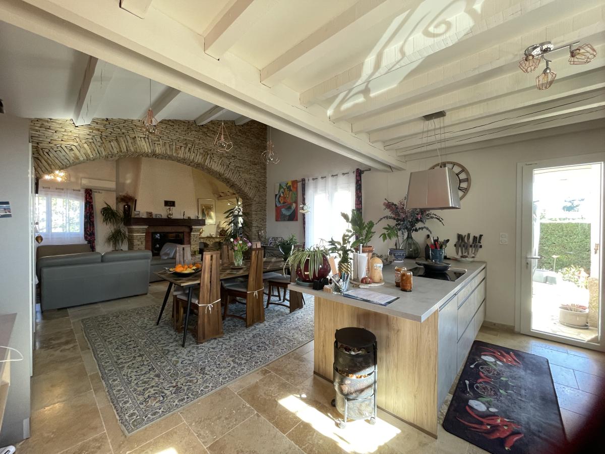 Maison de plain pied en parfait état sur Valréas, d'une surface habitable de 120m² sur un terrain de 598m², avec piscine, arrosage intégré, avec garage (portail motorisé), cave, buanderie. La maison est composée d'une entrée, une grande pièce salon salle à manger cuisine ouverte meublée et équipée, trois chambres, une salle de douche avec wc et un wc indépendant.