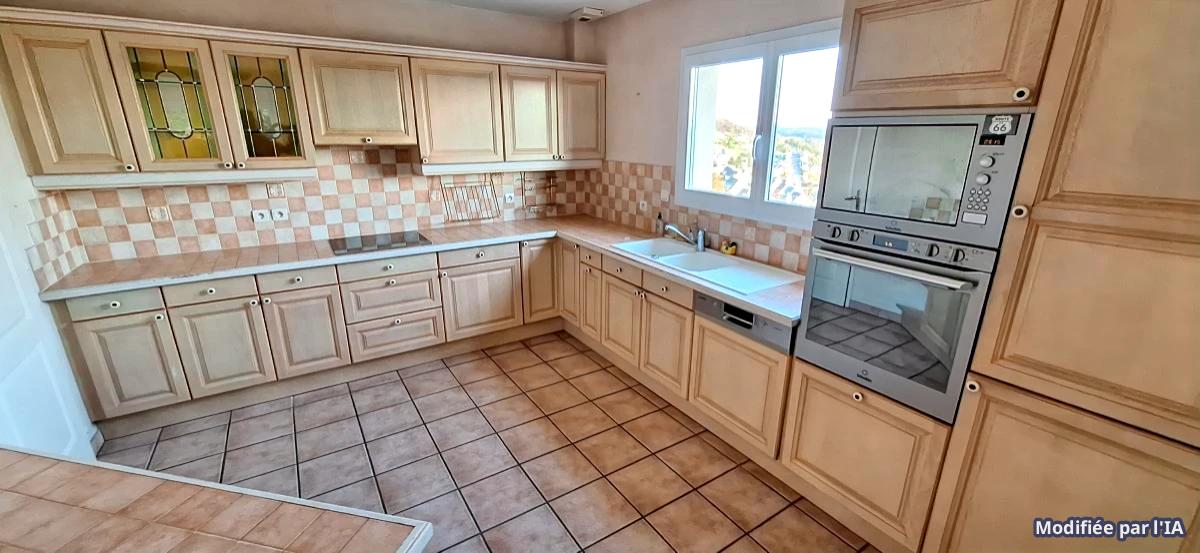 - 1 er étage ; l'entrée et le couloir donne accès à un wc , un séjour lumineux avec une terrasse, une cheminée, une cuisine aménagée et équipée et arrière cuisine