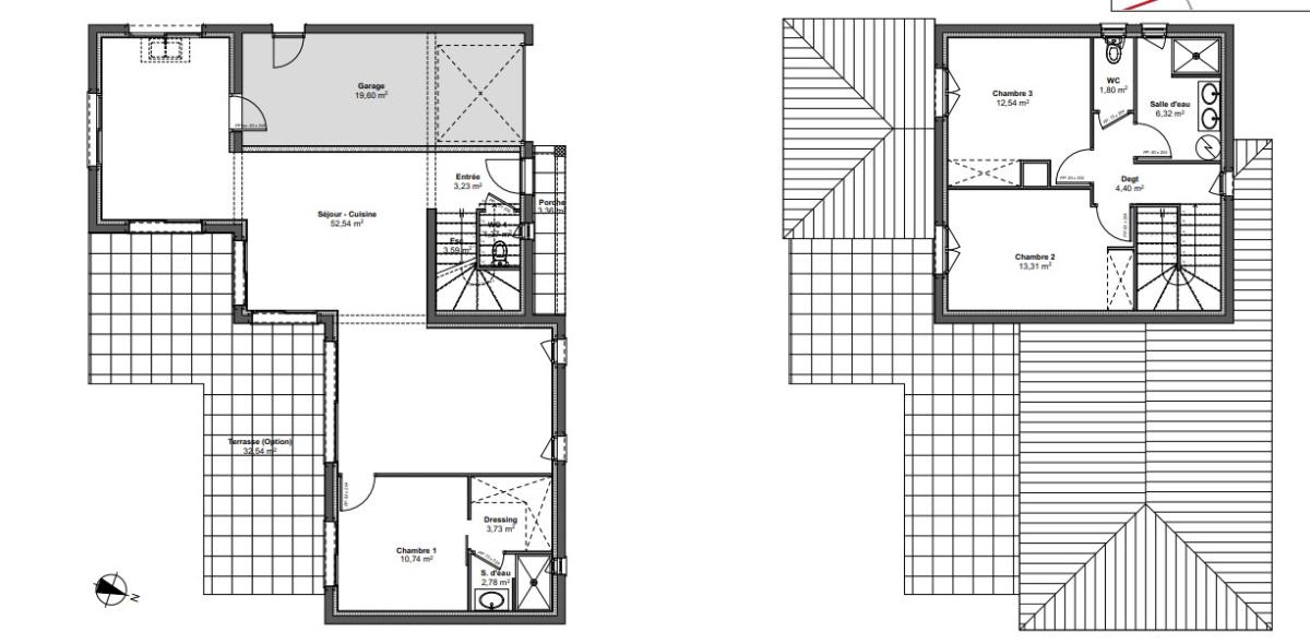 composée au d'un grand séjour cuisine donnant sur jardin paysagé, une suite parentale avec dressing et salle d'eau, wc