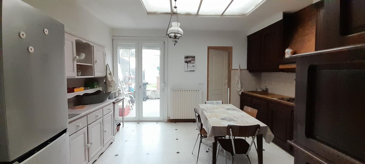 TOURCOING, entre Centre ville/Brun Pain, maison des années 30 d'une surface habitable d'environ 125 m². Elle se compose d'un salon/séjour spacieux, d'une grande cuisine avec espace repas, de trois grandes chambres (potentiellement quatre, ou trois chambres + un bureau), d'une salle de bains et wc. Elle comprend un jardin. Elle est équipée d'une chaudière au gaz, de fenêtres en double vitrage. Bien située, proche des commodités, écoles, transports et du centre-ville. DPE E 231 et E 50. Prix de vente 127 000 € dont prix net vendeur 120 000 € et dont 7 000 € TTC (5.83 %) d'honoraires de négociation à charge acquéreur. Les informations sur les risques auxquels ce bien est exposé sont disponibles sur le site Géorisques : www. georisques. gouv. fr