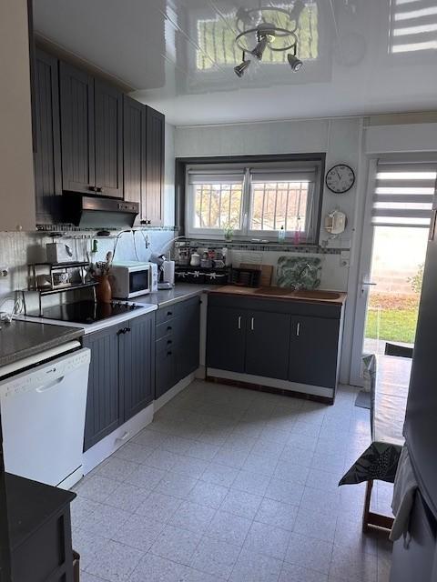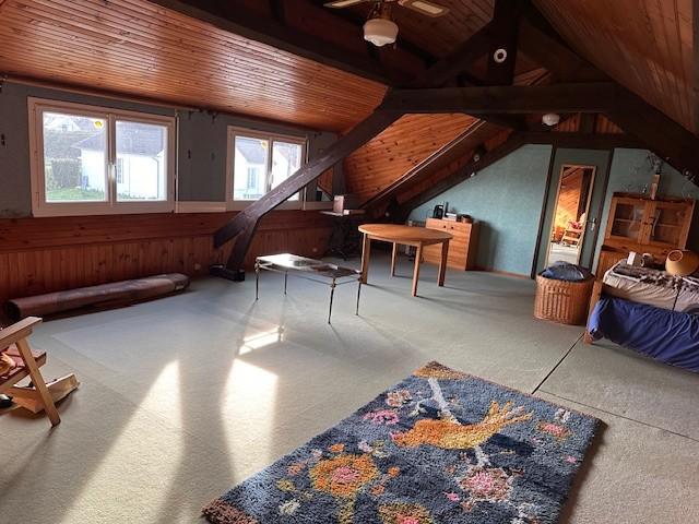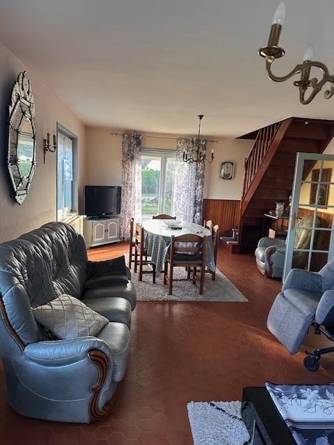 - Une salle à manger avec insert, une cuisine, une salle d'eau, trois chambres, un W.C.;