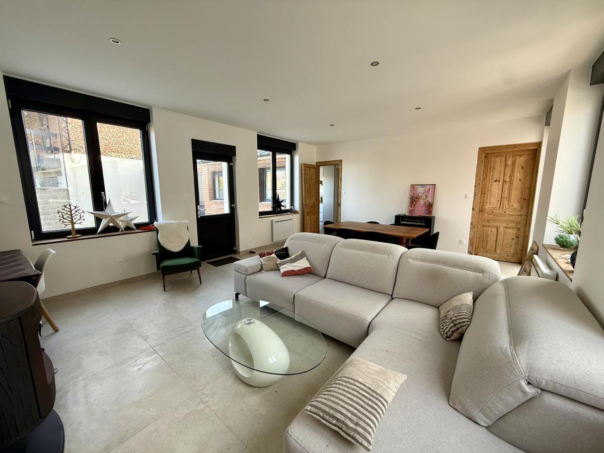 A Roeux ( 62118 ), dans le centre du village, sur 306m2, jolie maison individuelle type flamande de 130m² entièrement rénovée.