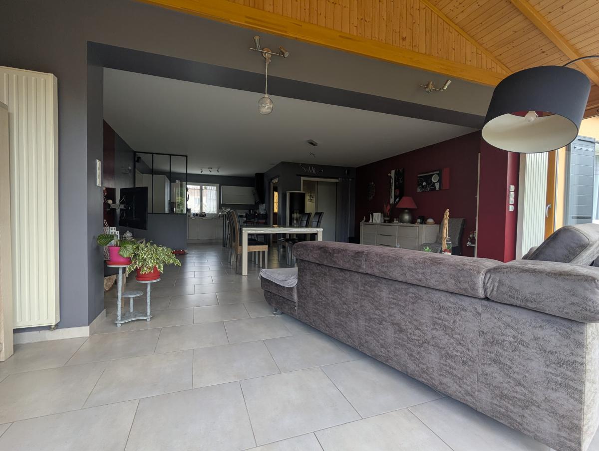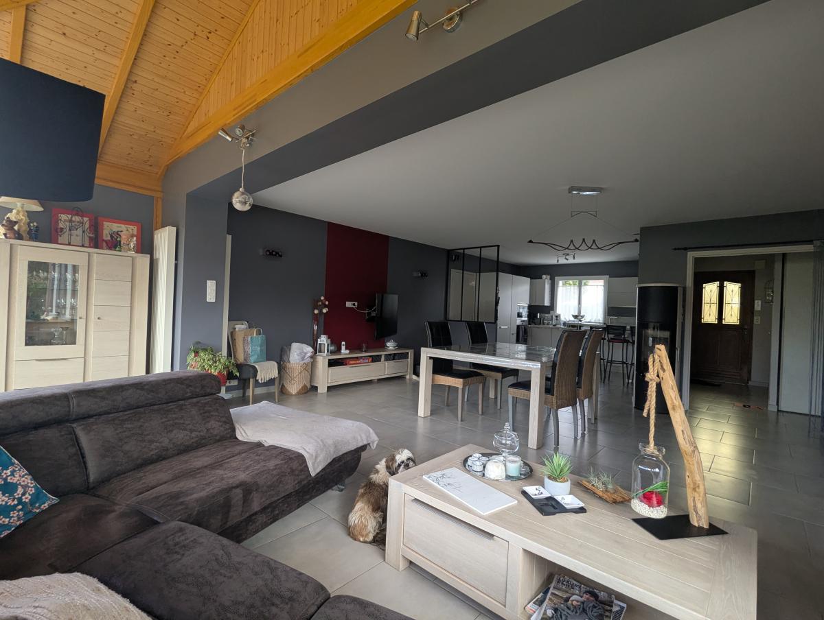 Maison à vendre située à Saint-Brevin-les-Pins, au calme dans un quartier résidentiel d'une surface approximative de 129 m², construite de plain-pied en 1997. Elle comprend 4 pièces, dont 3 chambres, ainsi qu'une salle de bain et un WC. La pièce de vie, spacieuse et lumineuse, offre une surface approximative de 60 m².