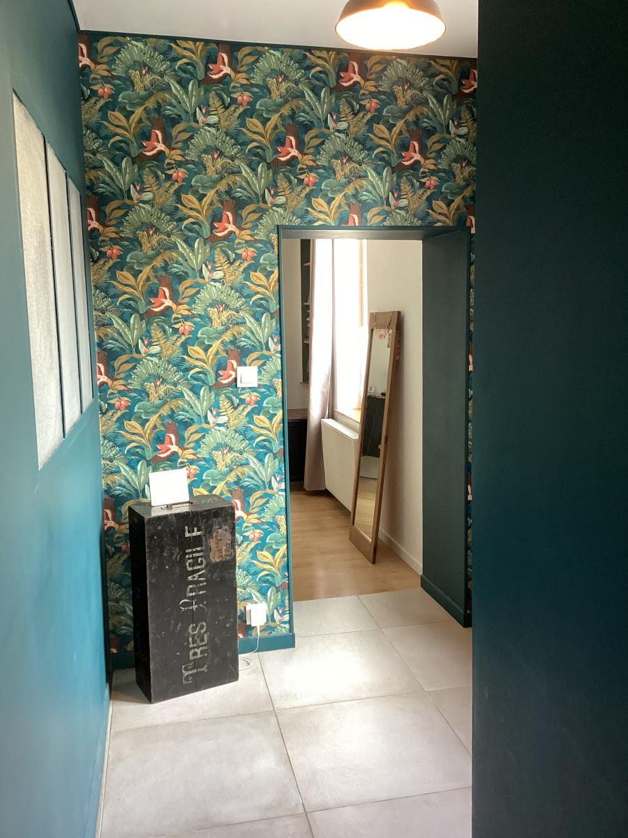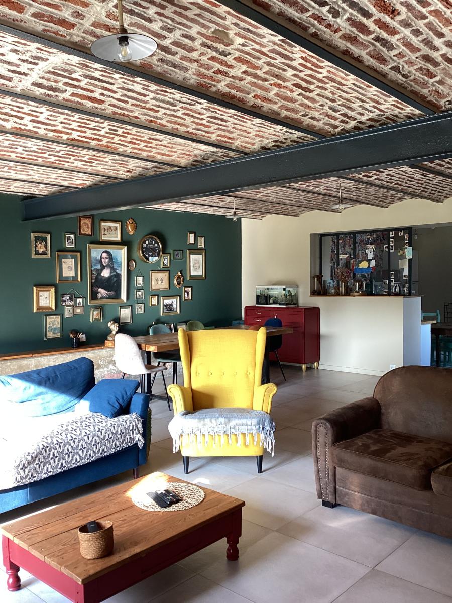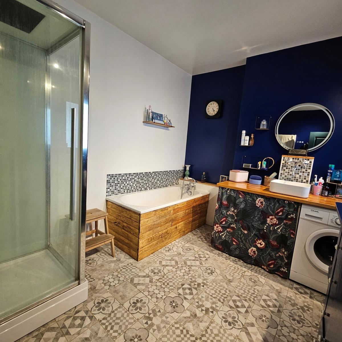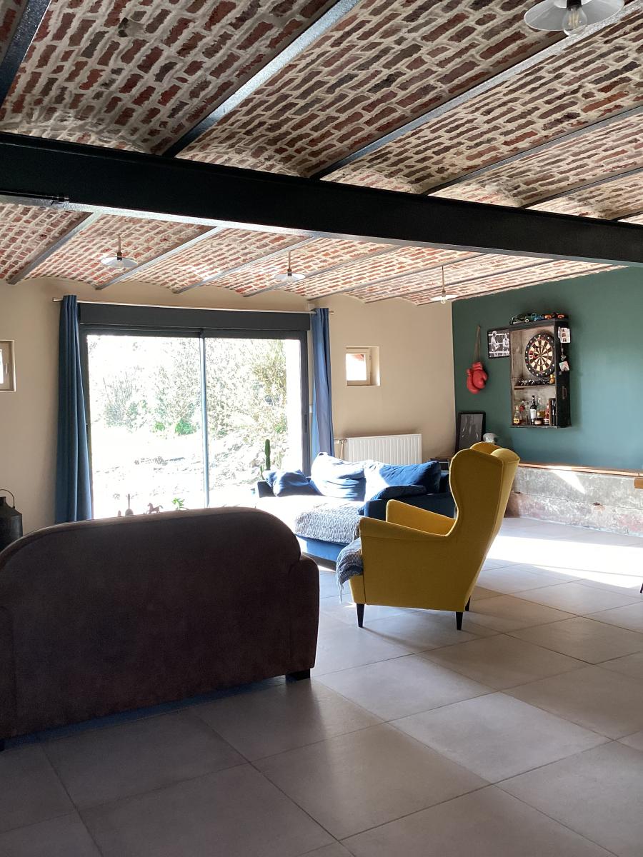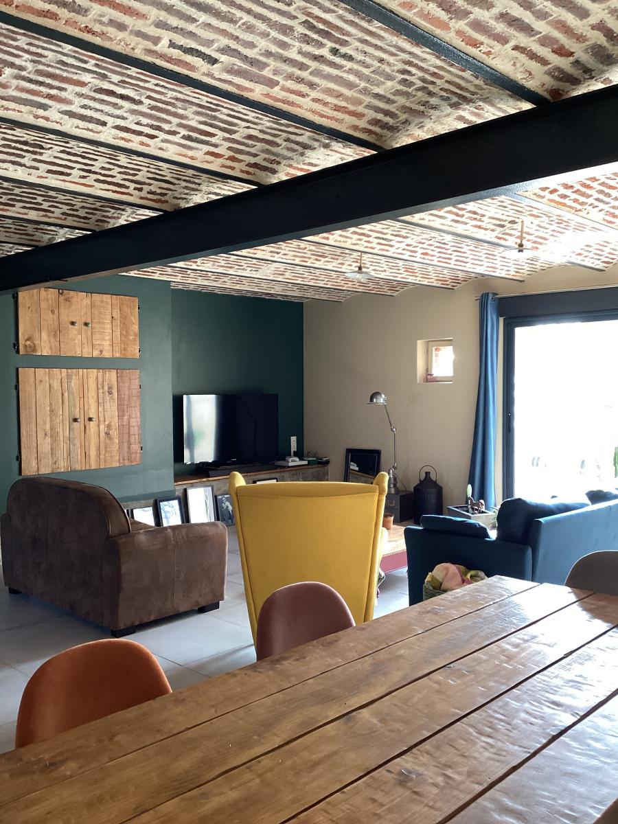 Maison individuelle rénovée comprenant au rez-de-chaussée un séjour d’une superficie de 53 m², une cuisine, une salle de bains, un WC ainsi que deux chambres.