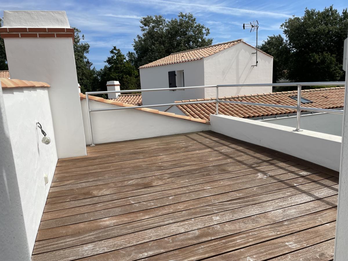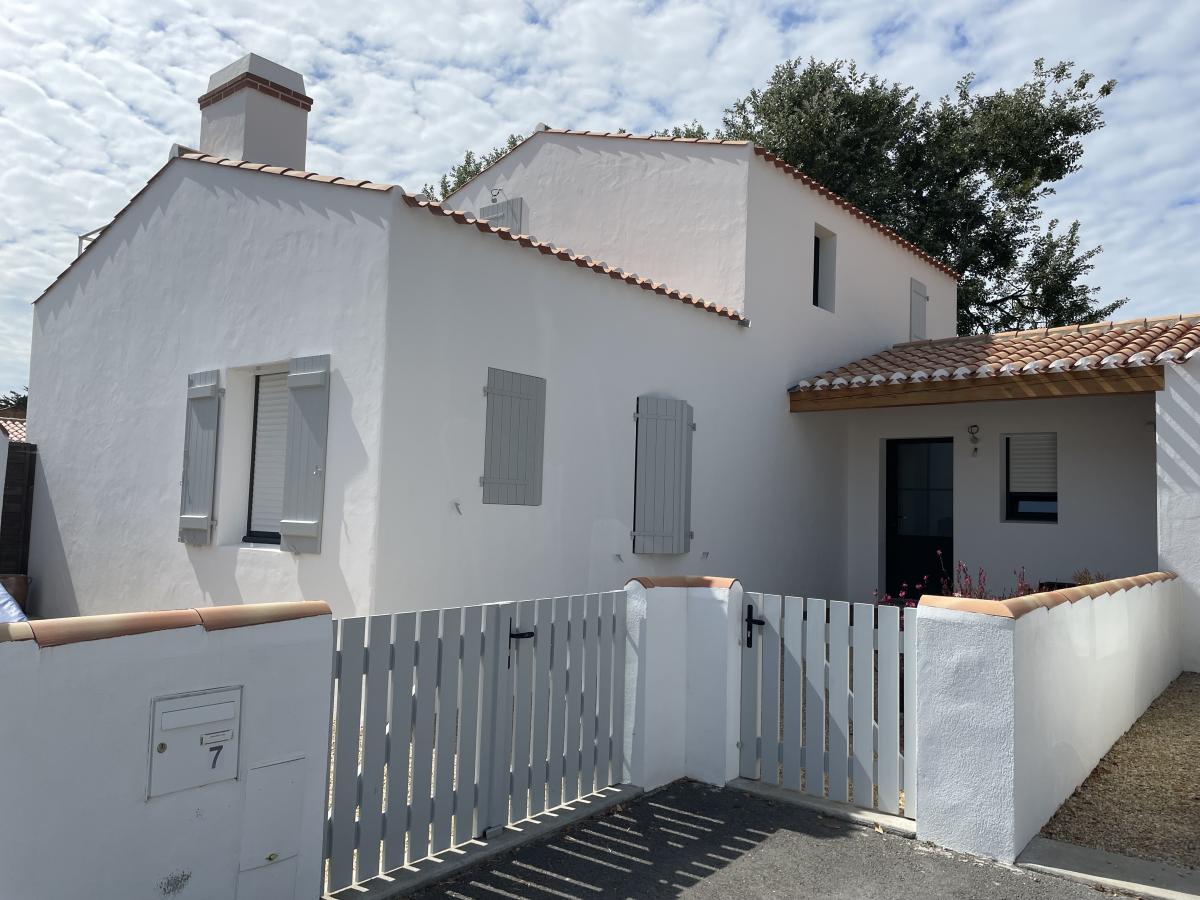 À vendre : Maison moderne en briques, de 2022, située côté dunes de Barbâtre, au calme d’une impasse. Cette propriété de 135m² offre un cadre de vie paisible et confortable. Au rez-de-chaussée, vous trouverez un grand séjour-salon avec une cuisine Porcelanosa, une verrière, une chambre, une salle d’eau avec wc suspendu, et un cellier. À l’étage, deux chambres supplémentaires et une salle d’eau avec wc suspendu. À l’extérieur, profitez d’un préau de 20m², d’une pièce pouvant être transformée en habitation, d’une terrasse et d’un garage de 31m². Située en zone blanche du PPRL, cette maison est idéale pour ceux qui recherchent tranquillité et modernité.