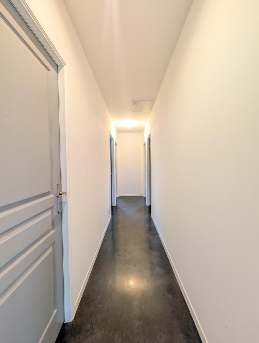 Elle propose des volumes généreux et naturellement lumineux, avec un agencement fluide et fonctionnel : entrée, double séjour d'environ 45 m² avec cuisine ouverte aménagée et équipée, arrière-cuisine/buanderie, dégagement desservant trois chambres (dont deux avec placard intégré), salle de bains avec douche, WC séparés et local technique.