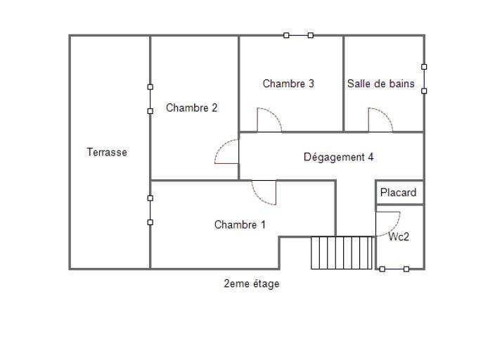 Cette maison, à étages, comprend 4 pièces, dont 3 chambres, ainsi qu'une salle de bain et 2 WC.