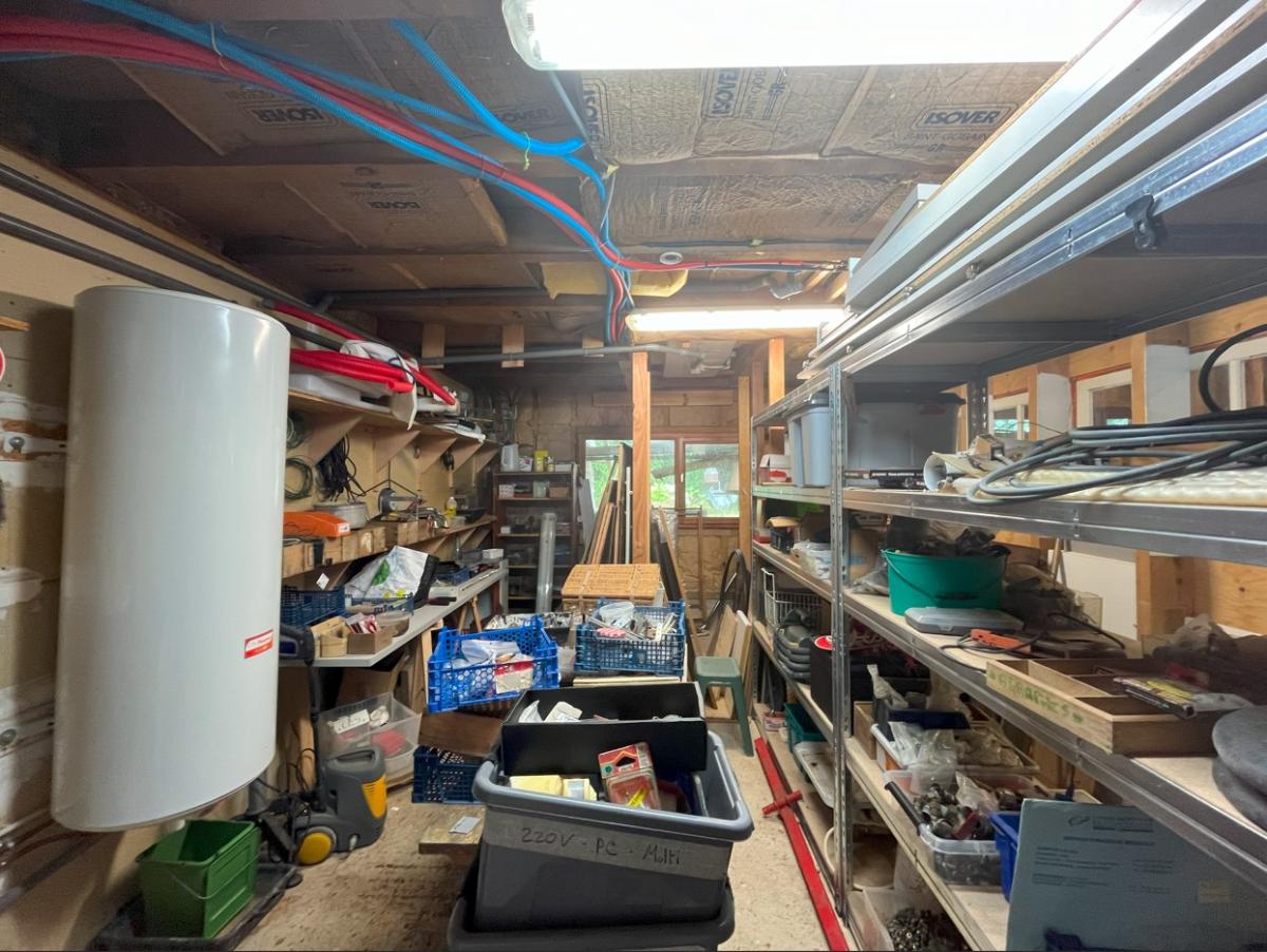 EN EXCLUSIVITÉ Maison proche centre-ville en ossature bois de 1995 comprenant au RDC: entrée, salle d'eau avec WC, buanderie, chaufferie, atelier, "salle d'exposition".
