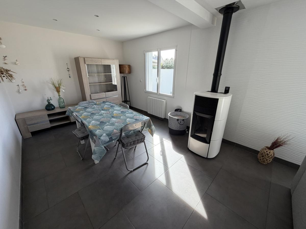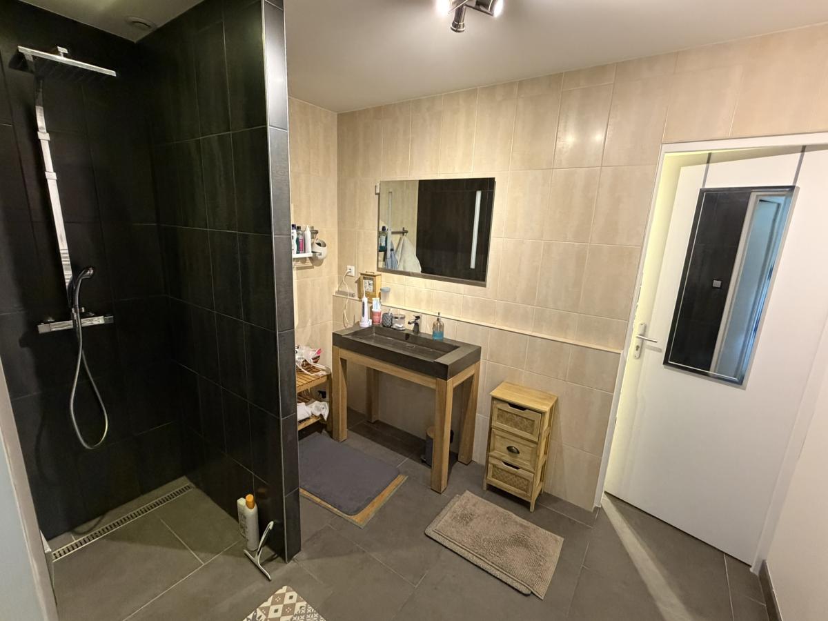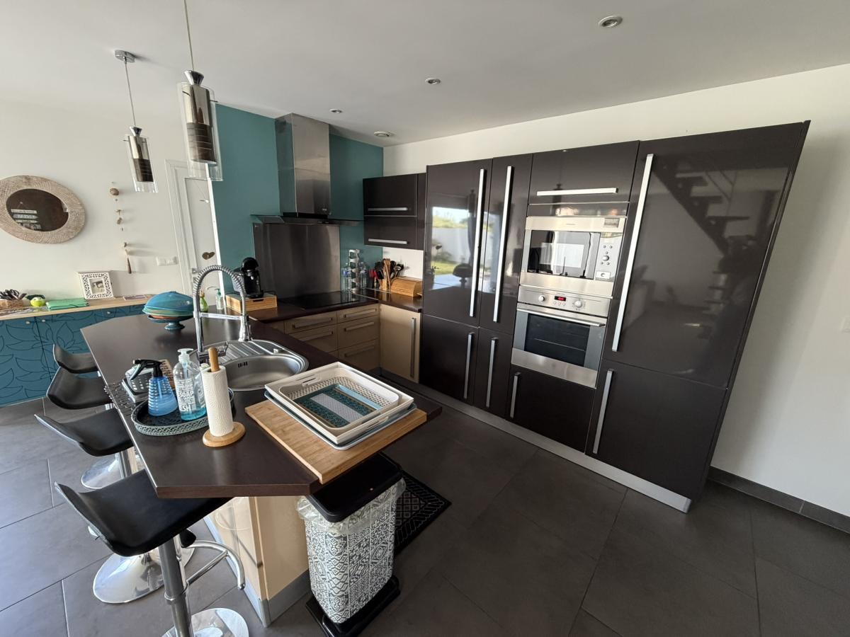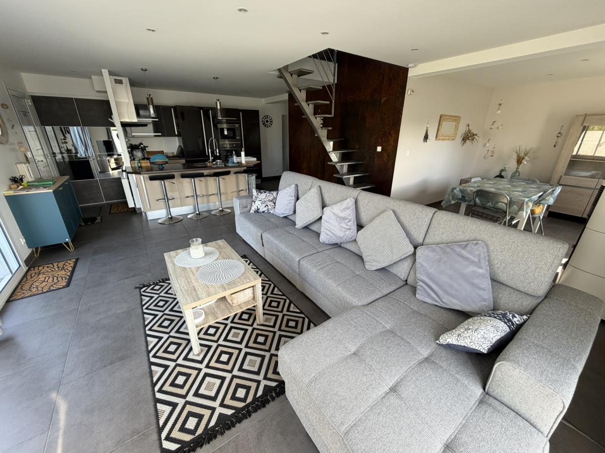 - Au rez de chaussée: entrée avec placard, grand séjour avec poêle à granulés connecté et cuisine ouverte équipée, WC, salle d'eau avec douche à l'italienne, lingerie, garage.