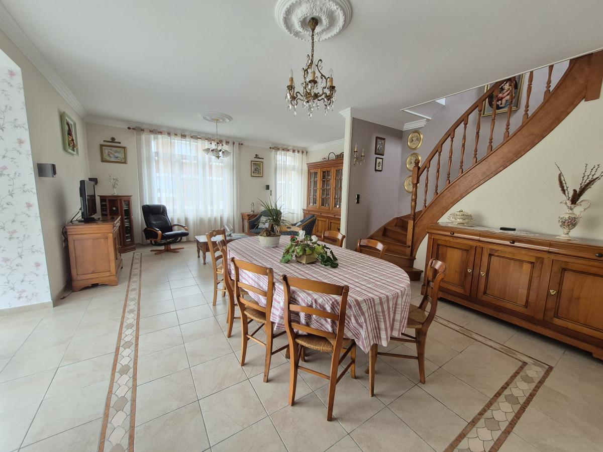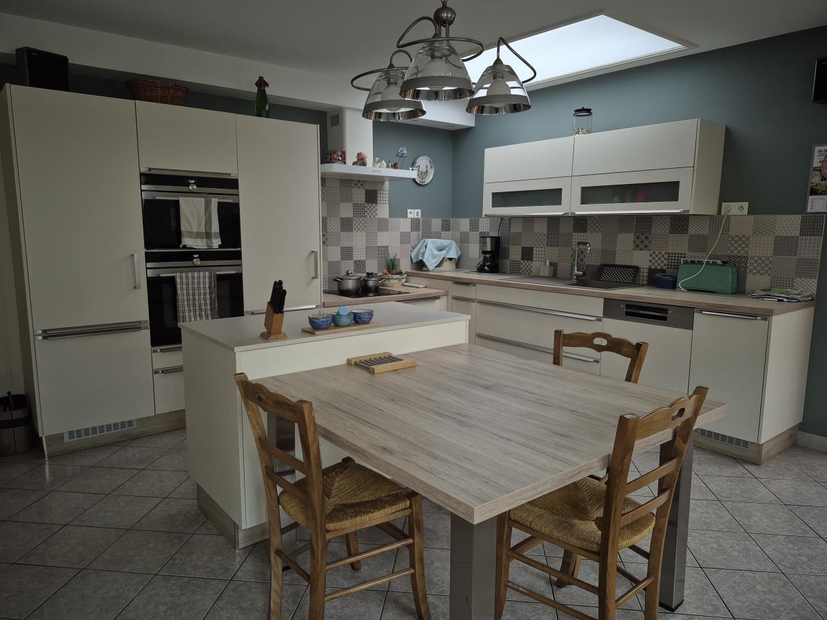 Maison de 160 m² avec 964 m² de terrain. Idéalement située dans la commune de Blendecques, à proximité des écoles et des commerces, cette charmante maison de ville semi-mitoyenne a été entièrement rénovée avec soin. Elle dispose d’un jardin arboré avec vaste terrasse, deux garages avec portes motorisées, une cour intérieure fermée avec places de parking et portail, ainsi qu’une citerne d’eau de 10 000 litres. À l’intérieur, vous trouverez une cuisine Léobey entièrement équipée de 26 m², une salle à manger spacieuse de 40 m², un salon chaleureux de 21 m² avec feu à bois, une salle de bain moderne avec double vasque, douche à l’italienne, baignoire et nombreux rangements, ainsi qu’une lingerie, un cellier, des toilettes séparées et une cave. L’étage offre trois chambres dont deux destinées aux enfants, des toilettes séparées avec lavabo et deux grands greniers avec charpente traditionnelle permettant d’aménager plusieurs pièces supplémentaires. Côté technique, la maison bénéficie d’un chauffage par chaudière fioul à condensation, de fenêtres en PVC double vitrage et de persiennes motorisées. DPE : C