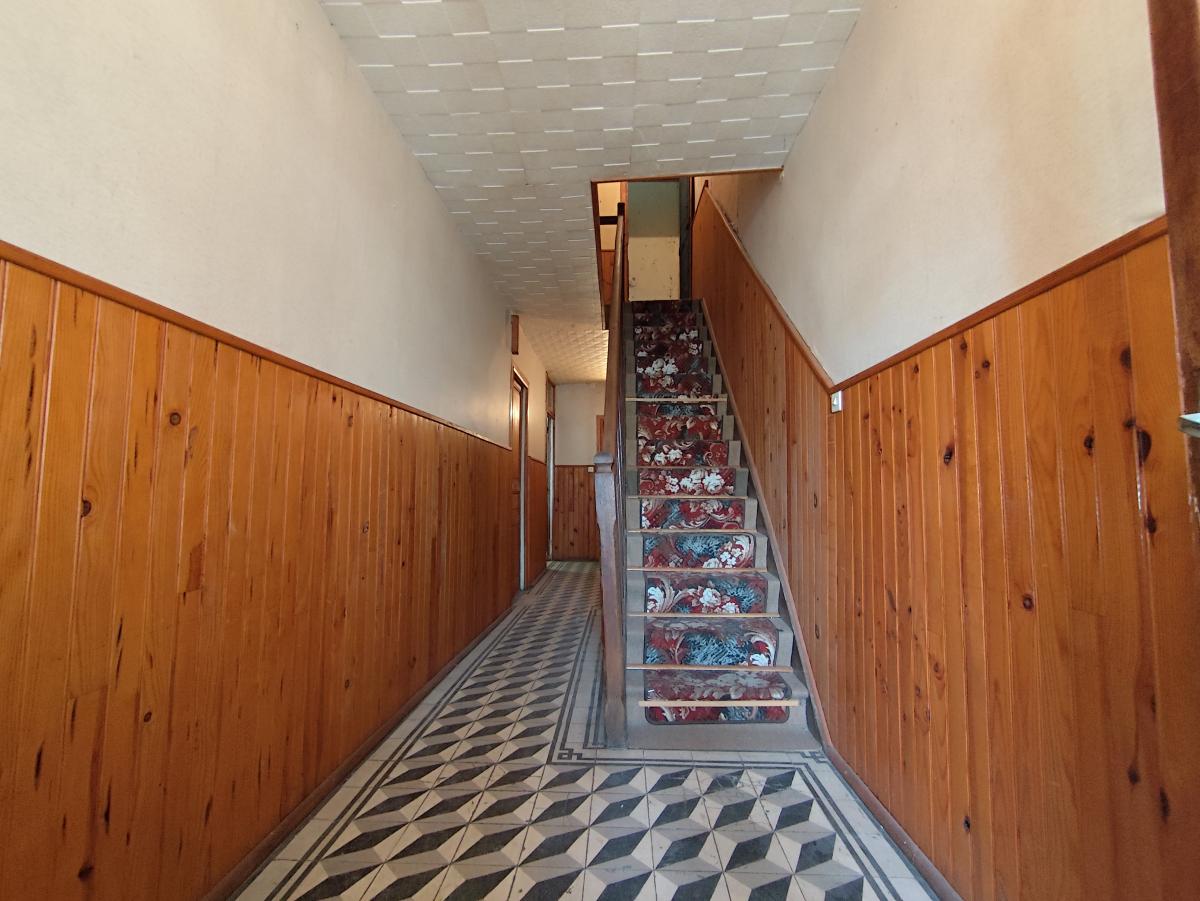 -> Au rez-de-chaussée : entrée couloir, cuisine ouverte sur salon et salle à manger, une chambre, dégagement, buanderie avec un WC séparé et salle d'eau.