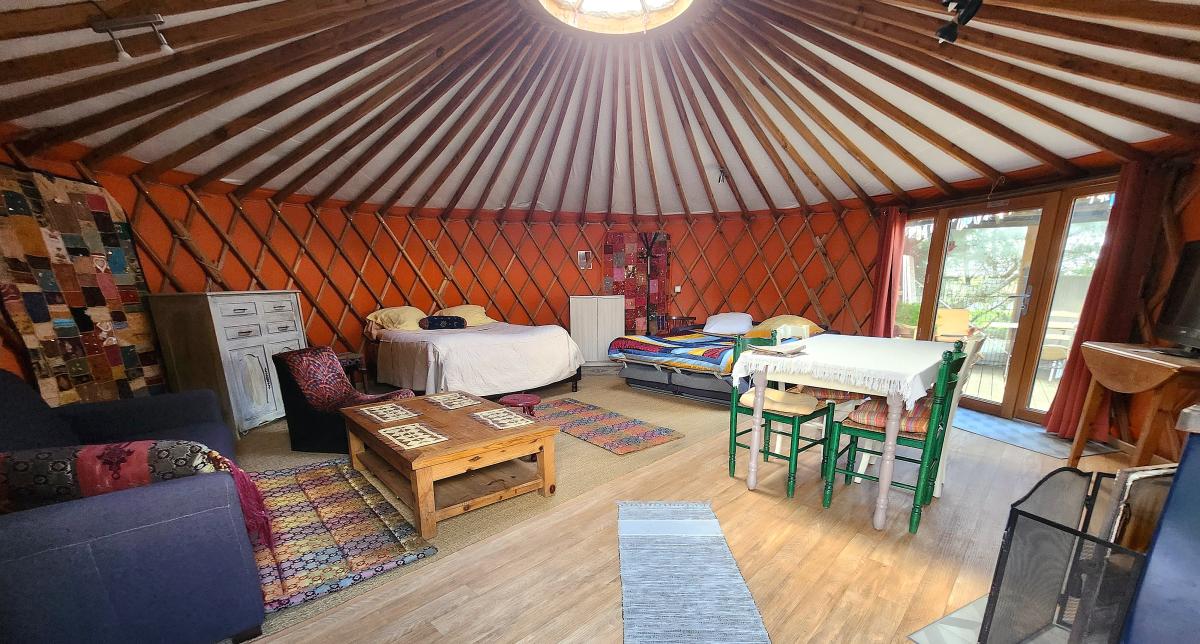La propriété offre également une activité locative avec une yourte de 35 m² disposant de sa terrasse et d’un local comprenant douche et cuisine. Un camping à la ferme de six emplacements, pouvant accueillir jusqu’à 19 personnes, est aménagé avec des sanitaires et un espace intérieur servant de salle à manger.