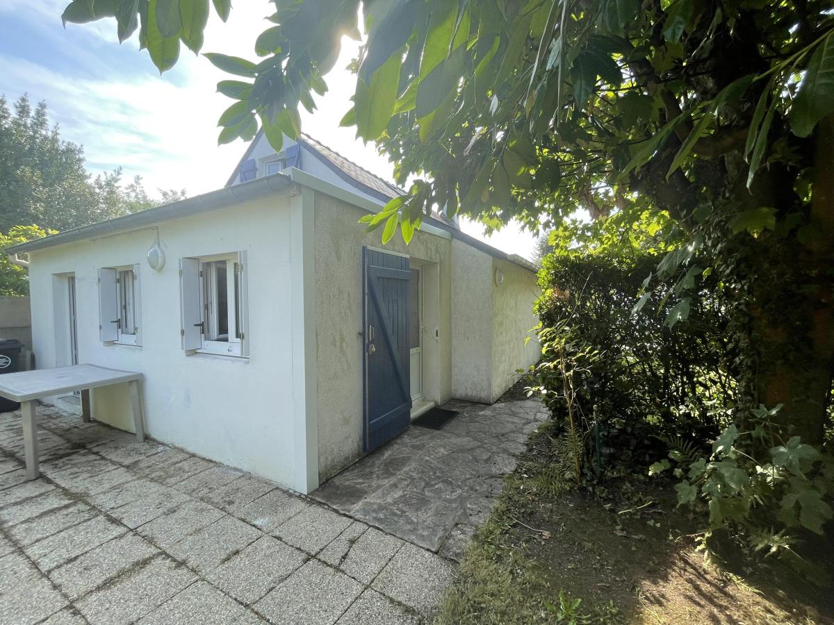 Carnac, au delà des alignements, dans un environnement calme, maison en bon état, comprenant au rez-de-chaussée: un salon salle à manger avec cheminée, une cuisine équipée aménagée, une chambre et une salle d'eau. A l'étage une chambre. Buanderie et espace de rangement attenant à la maison. Joli jardin paysagé.