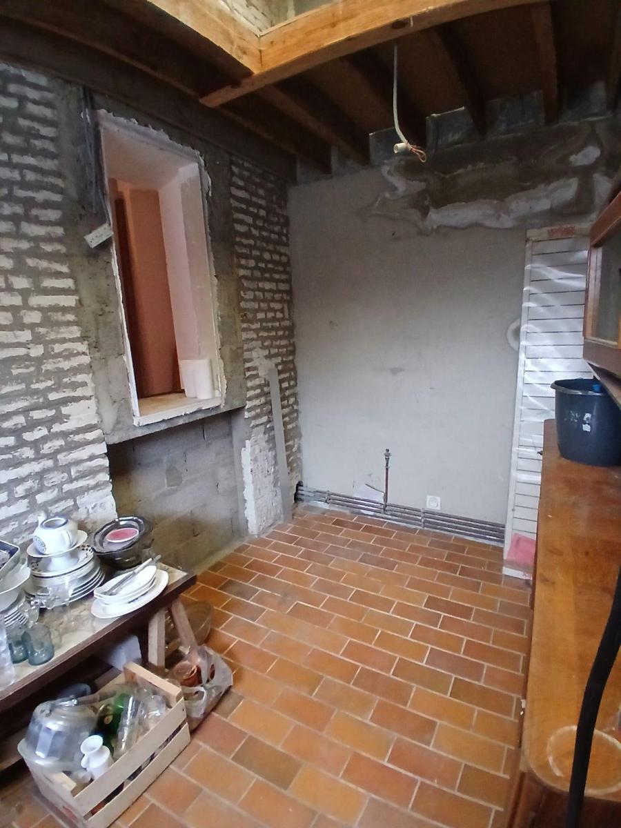 Une maison mitoyenne construite en briques et couvertures en ardoises comprenant : au rez de chaussée : quatres pièces. A l'étage : palier, deux chambres. Garage et terrain de 218 m2.