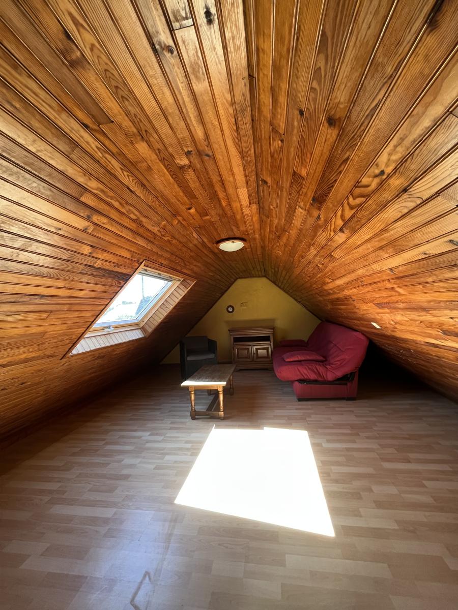 . Au rez-de-chaussée : Séjour/salon (poêle à bois)/cuisine aménagée ouverte, deux chambres, salle d'eau, wc.