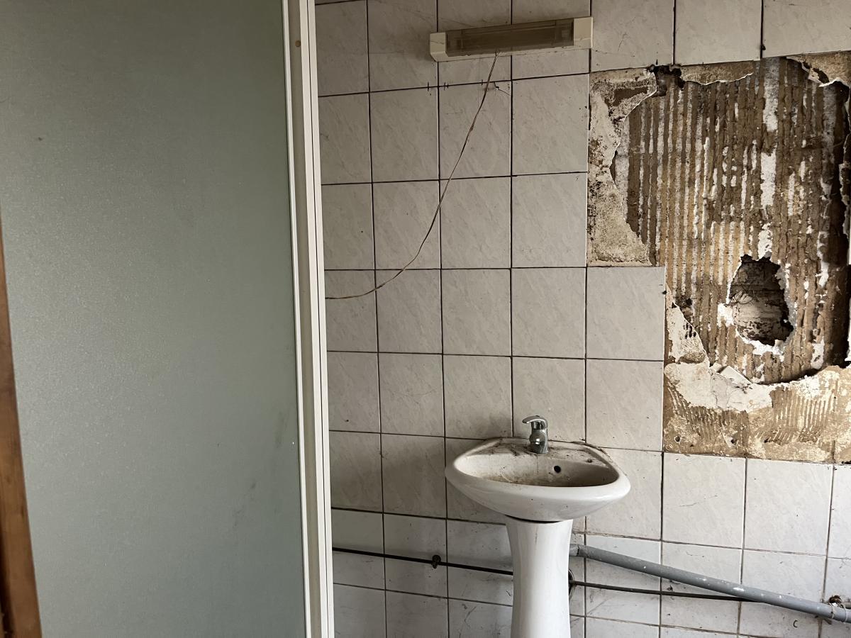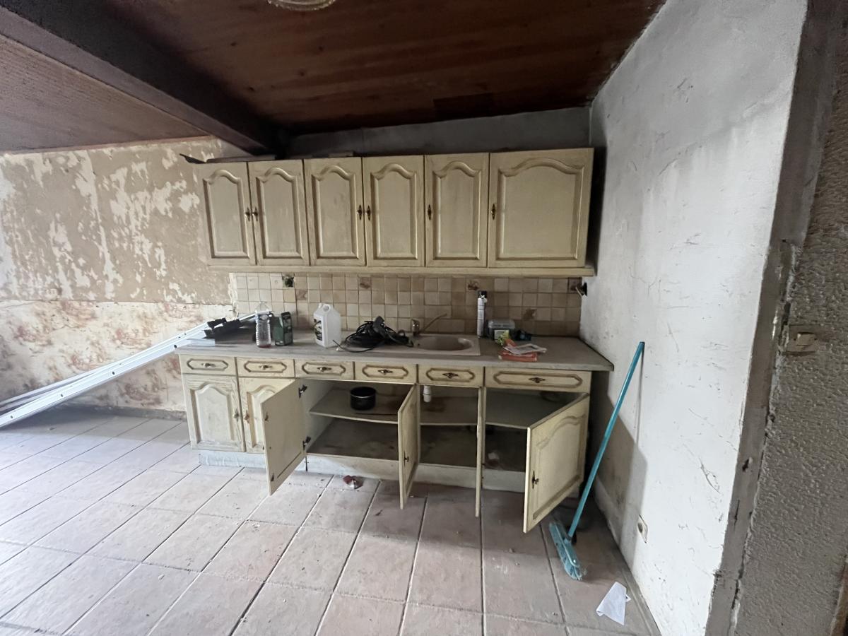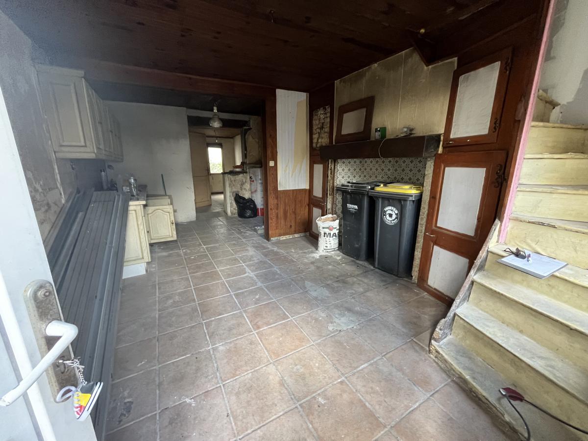 Maison de ville à rénover comprenant en rdc : trois pièces à vivre , WC , salle d'eau , à l'étage palier desservant deux pièces , une cour .