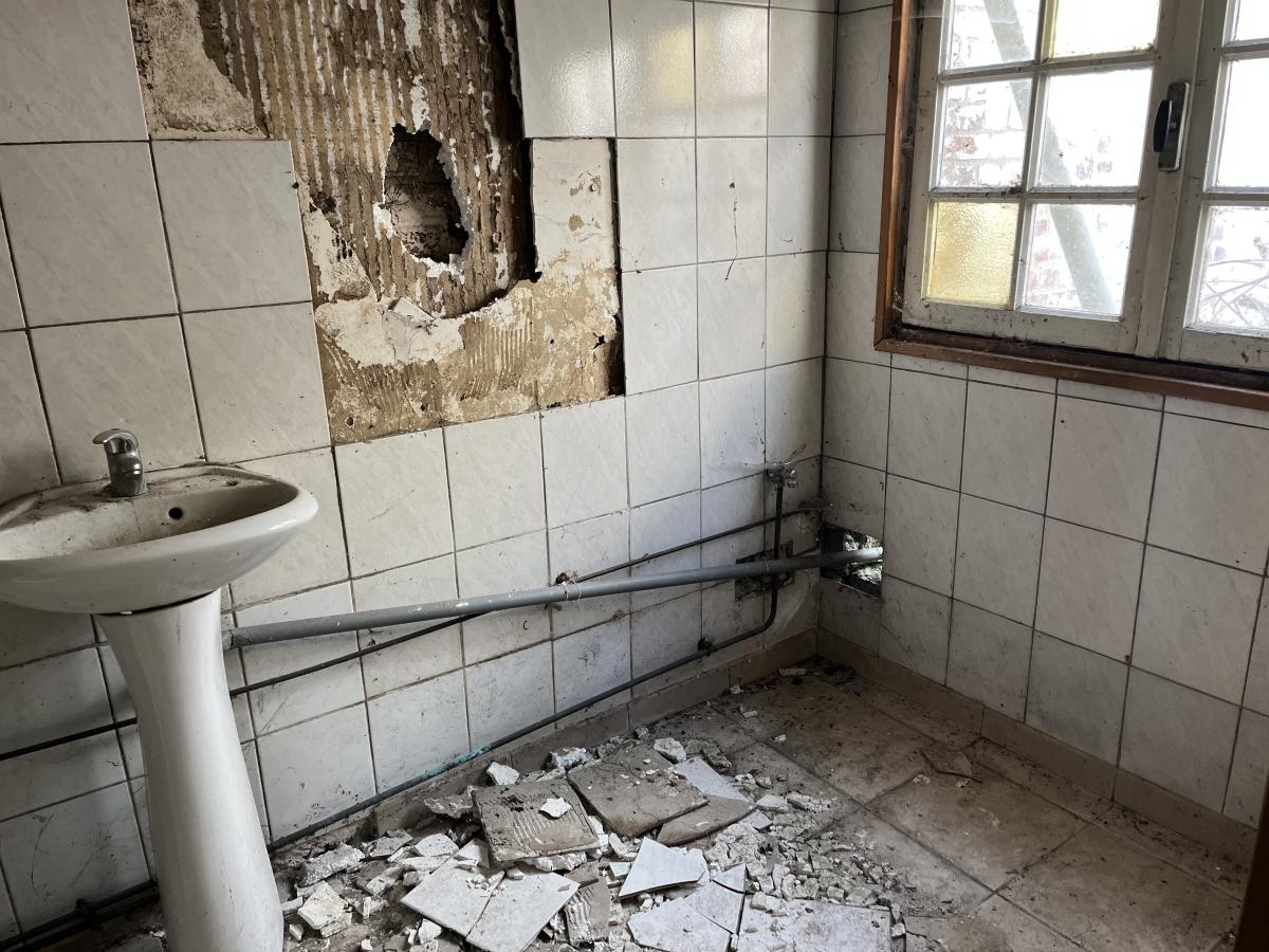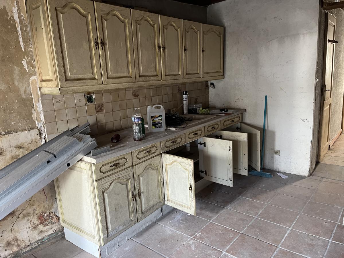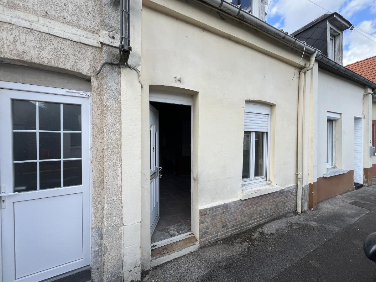 Maison de ville à rénover comprenant en rdc : trois pièces à vivre , WC , salle d'eau , à l'étage palier desservant deux pièces , une cour .