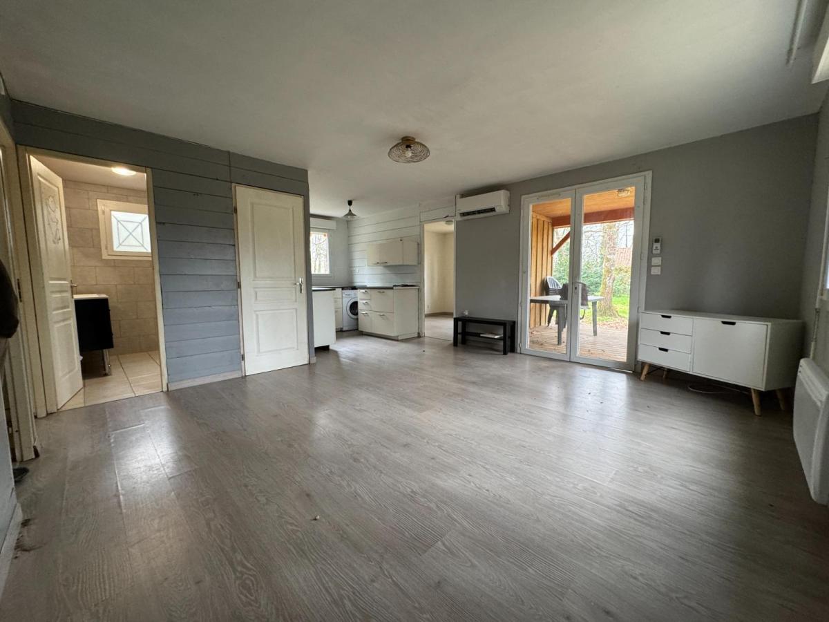 Dans un secteur calme et boisé, proche du village de Barbaste et de la ville de Nérac (Lot-et-Garonne 47), chalet d'environ 60 m² composé d'un séjour avec coin cuisine, de trois chambres et d'une salle d'eau. Jardin autour avec terrasse couverte. Chauffage climatisation réversible. Assainissement individuel.